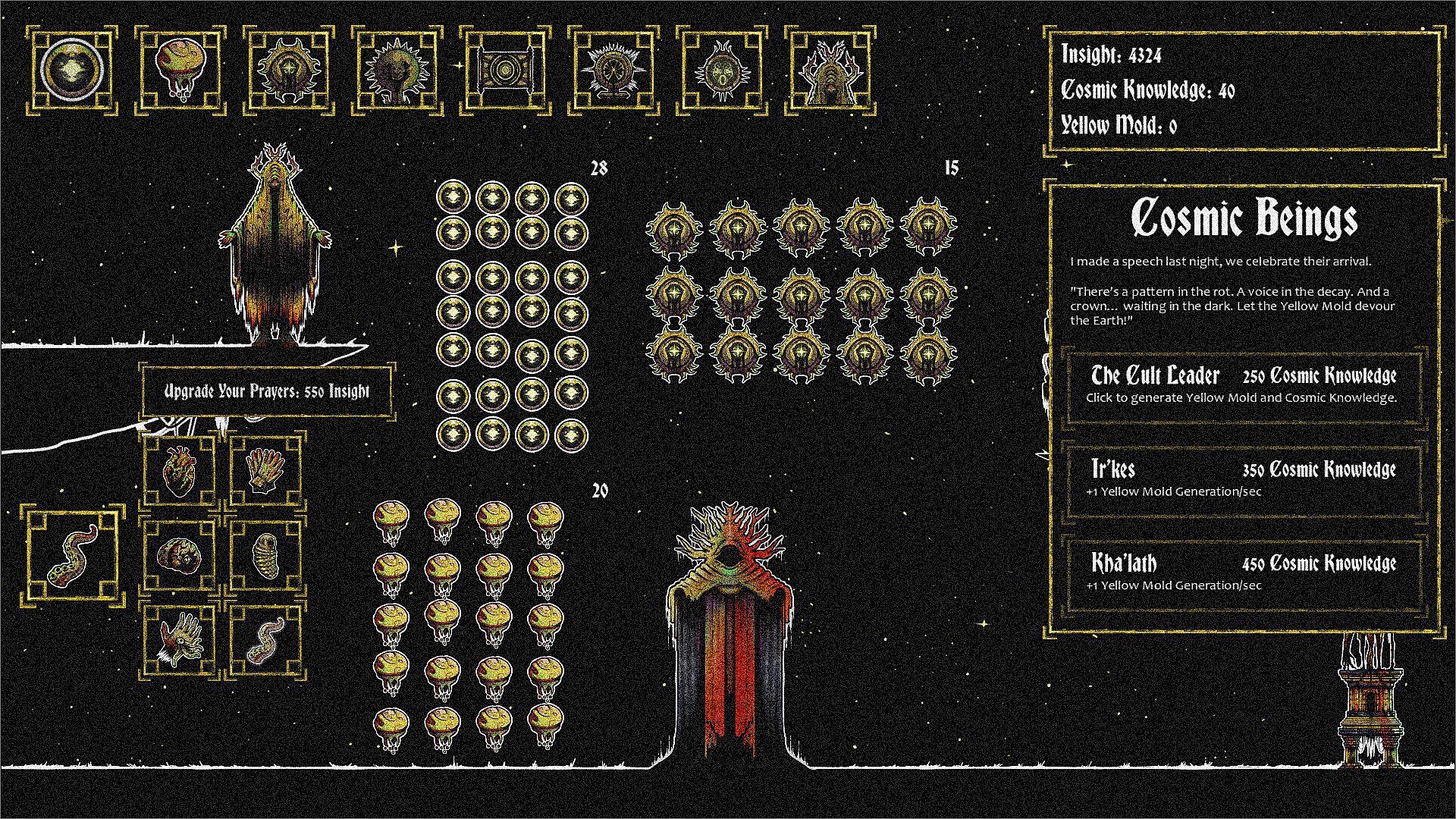 Build your cult. Spread the mold. Watch the sky bloom with yellow eyes, click to decay beautifully.