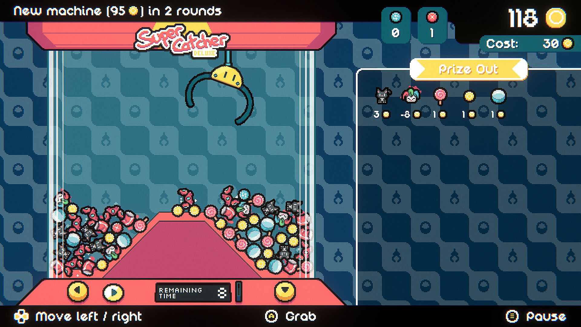Customize your runs by adding or removing prizes to build powerful combos, and upgrade the claw for greater success!