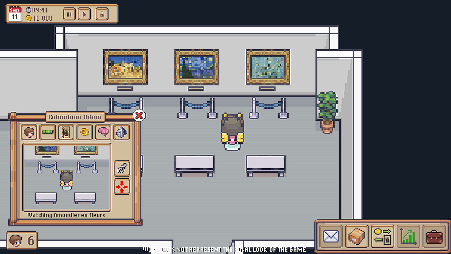 Creating a museum is one thing, managing it is another! The player must also take care of the needs of his visitors by hiring staff, offering derivative products or even launching exclusive collaborations with other museums. He can also use marketing campaigns to increase the attendance and reputation of his museum.