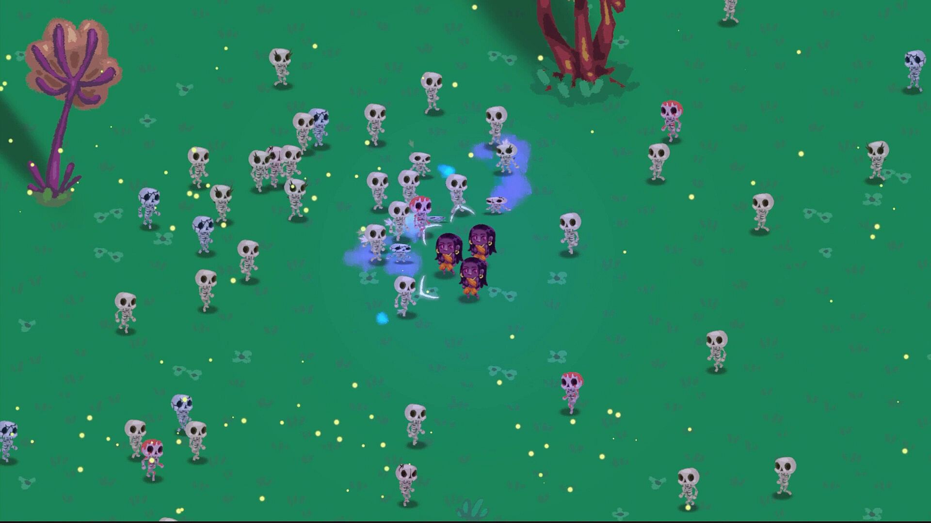 Choose from nine cursed heroes, each with unique class trees and synergies.