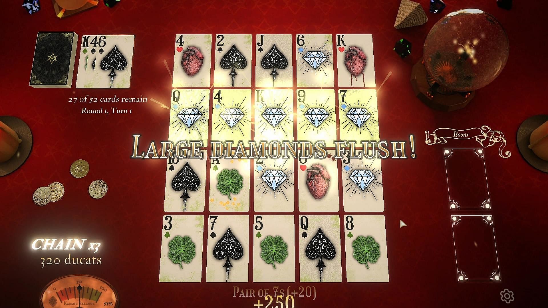Swap cards to create poker hands, plan your matches to clear each board, fortify your deck with glorious boons, break any curses inflicted upon you, and test your fate in a variety of special events!