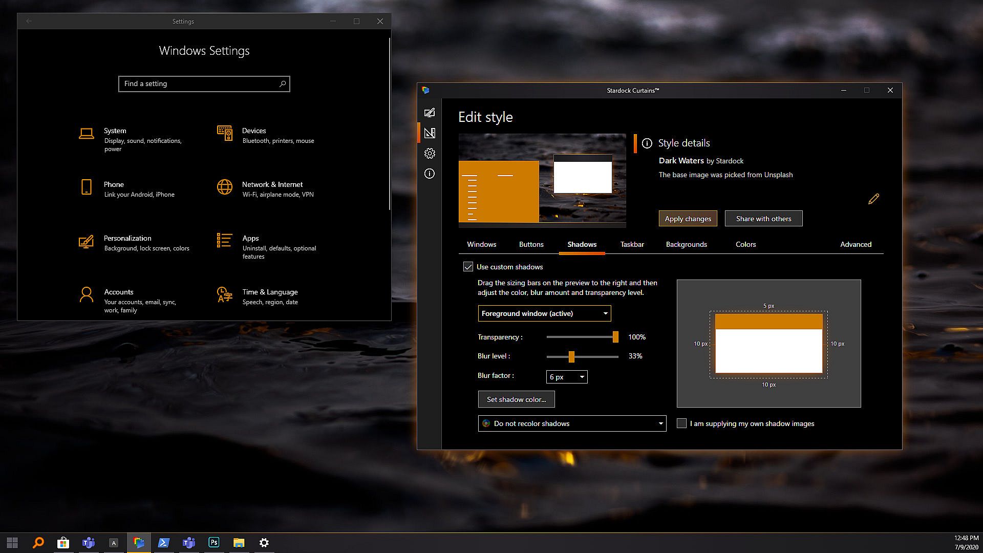 A Curtains style can change everything that Light and Dark mode can change, including the Start button, title bar buttons, and title bar coloring. It also supports tweaking gradients, shadows opacity, and hundreds of other small elements of the Windows GUI.