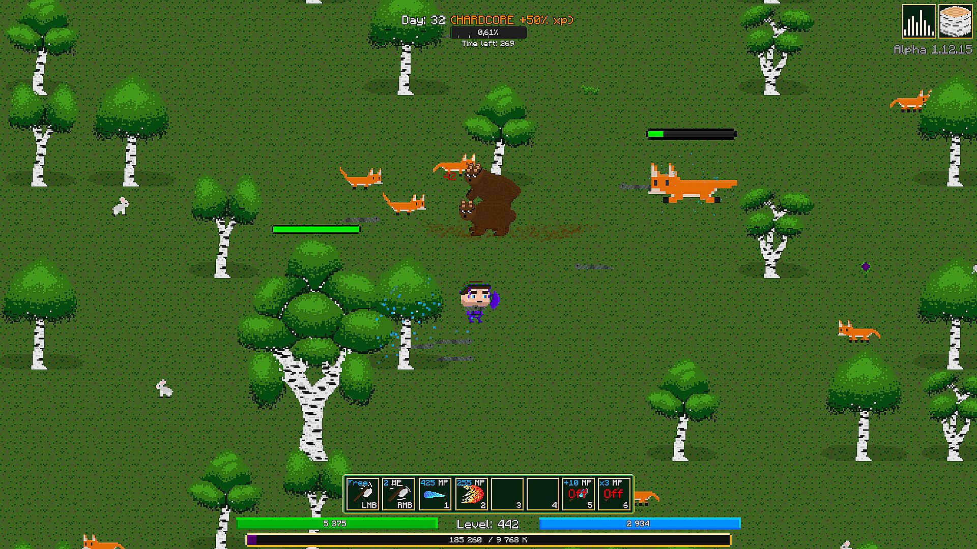 In game your main goal is to collect birch and earning xp to level up your hero.