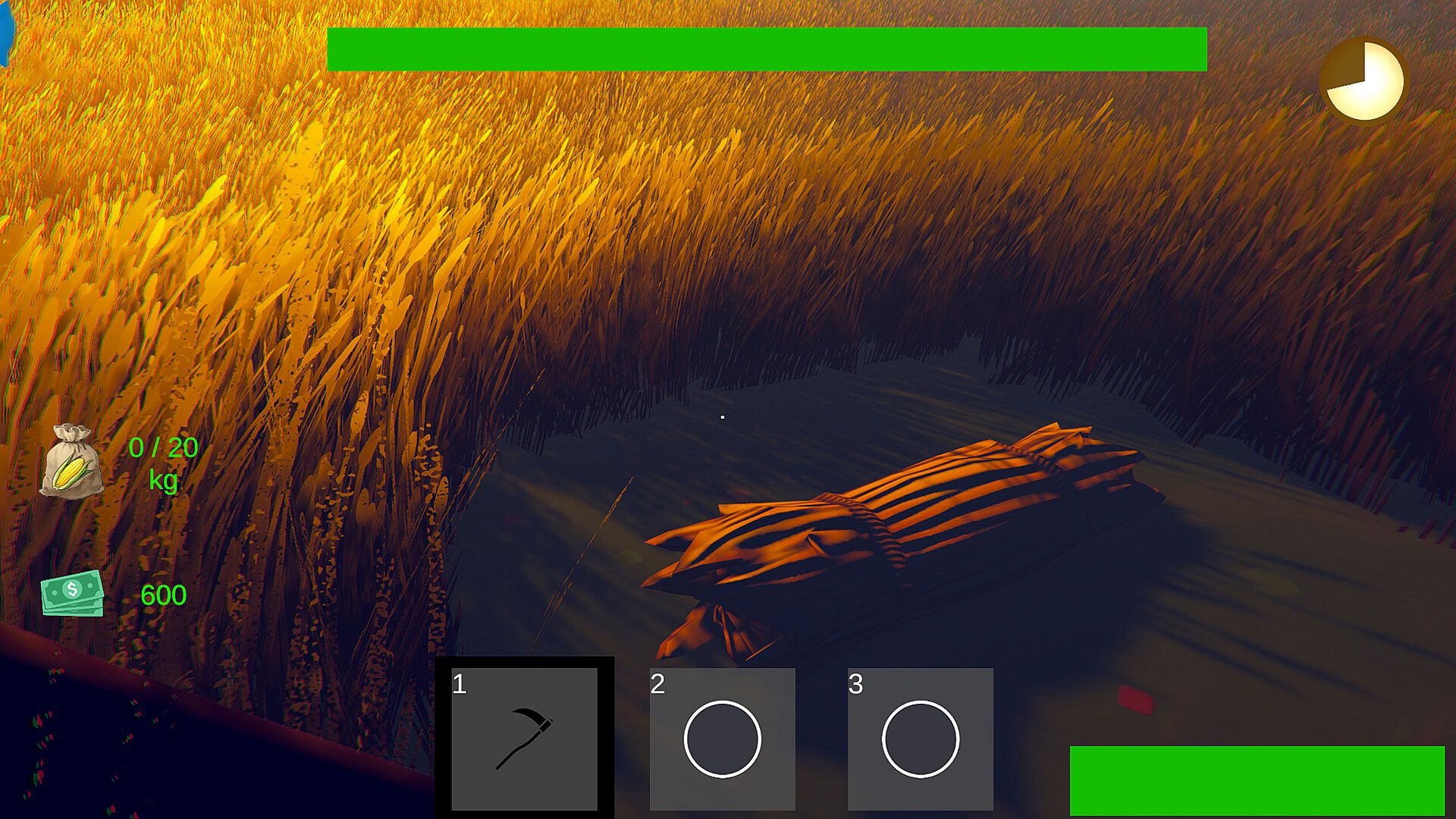 By day, explore fields full of tall grass and hidden loot. Gather resources, sell them at your farm, and buy upgrades. But when night falls... the monsters come.