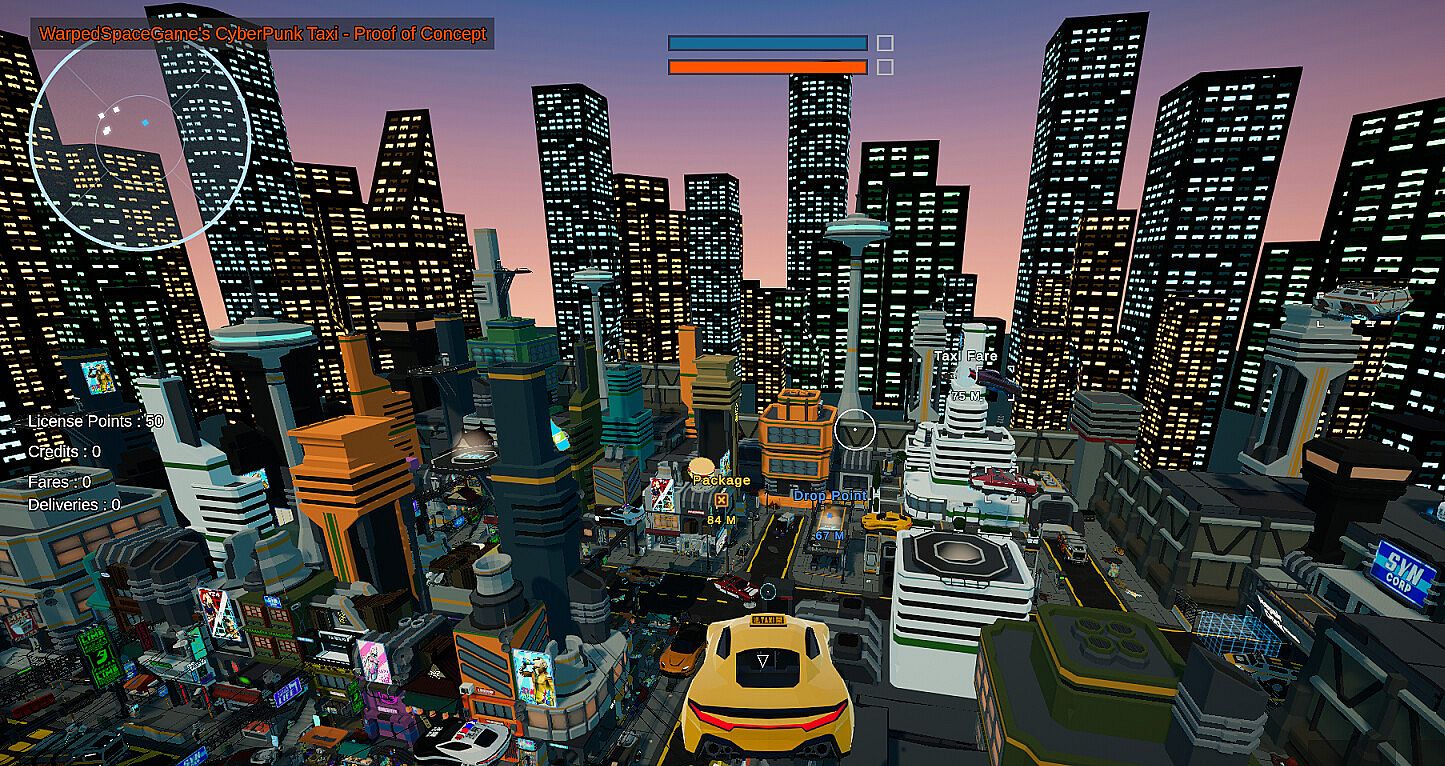 Cyber Courier 2088 is an cyberpunk sci-fi courier game, where you start out as a taxi driver transporting passengers and goods in a crazy low-poly world.