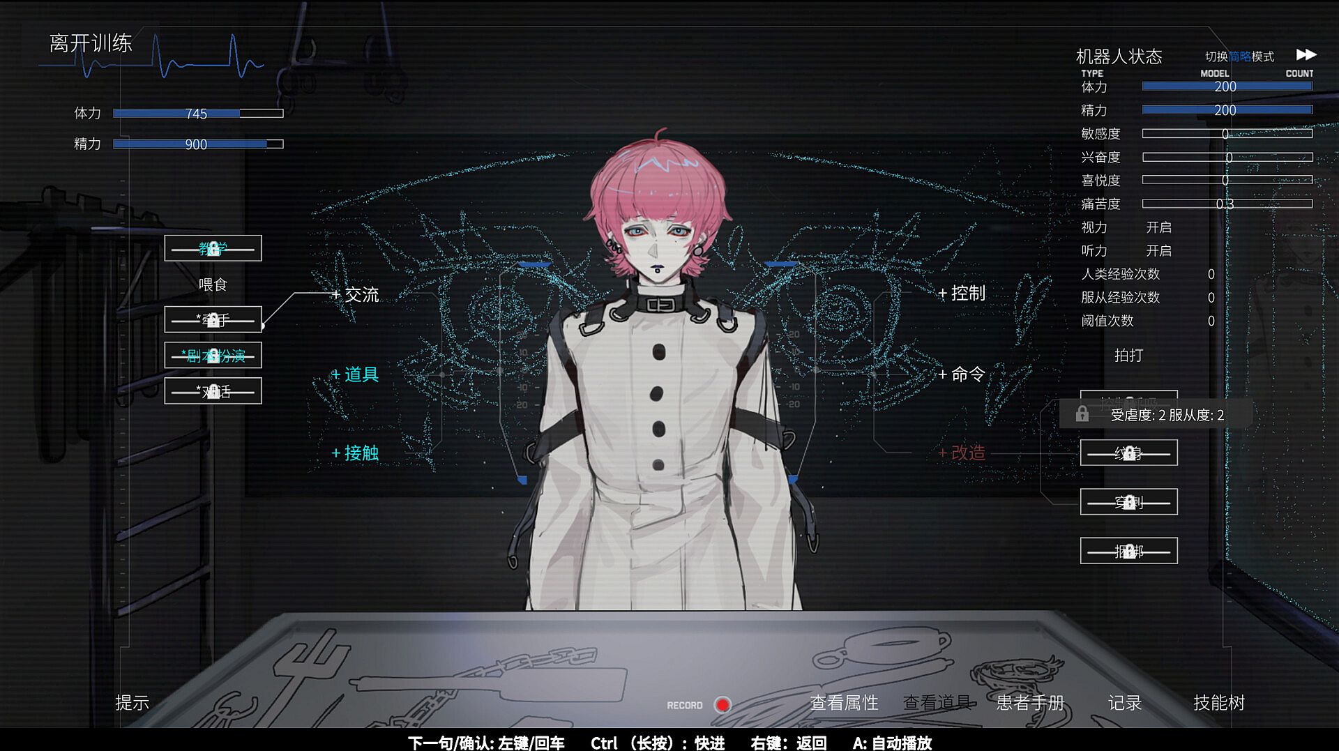 You'll participate in various "treatment sessions" with this android, ranging from tender care to intense punitive experiences, as you navigate the thin, dangerous line between love, submission, pain, and control.