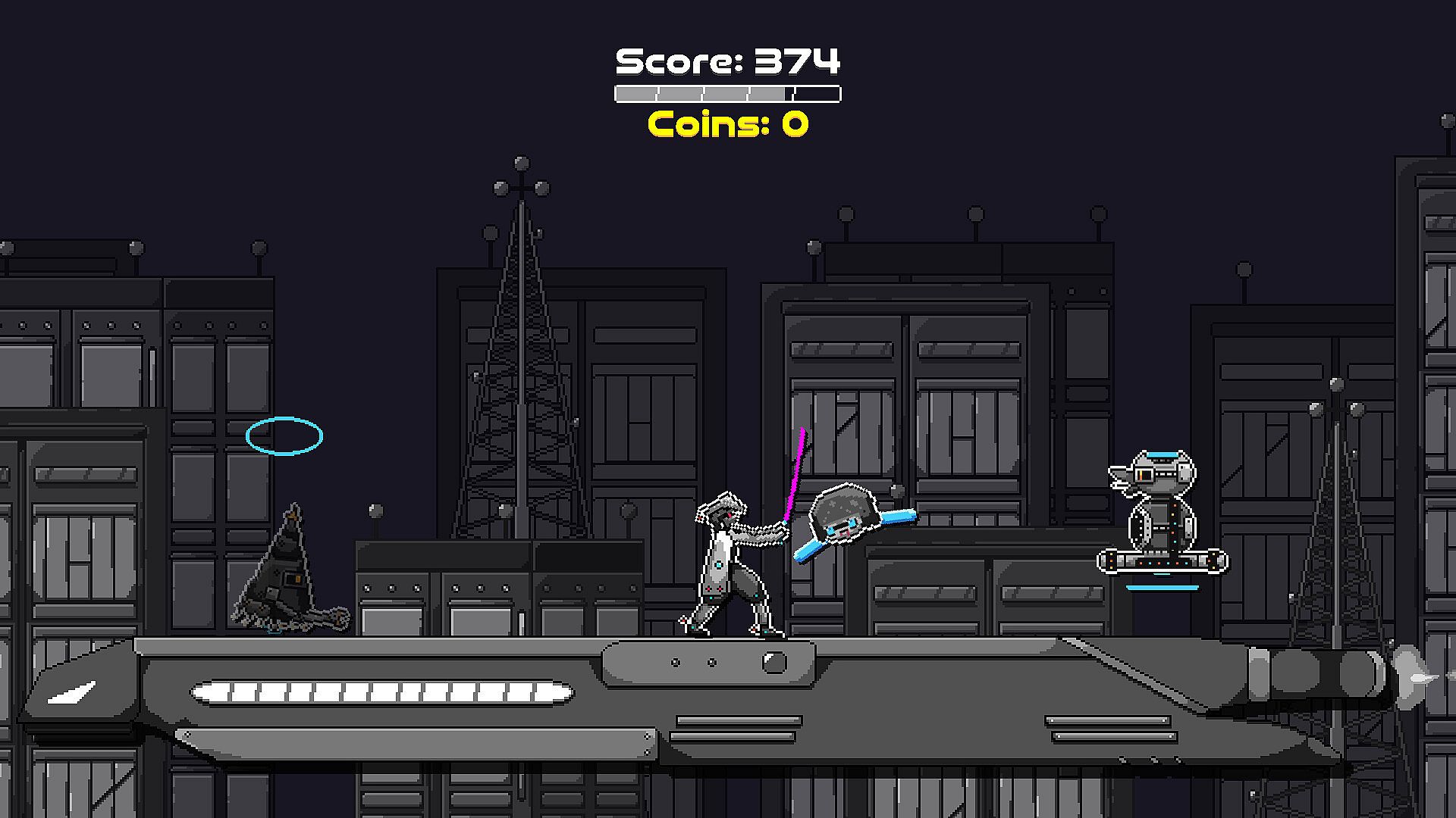 Fight through relentless hordes of cybernetic enemies in a pixel arcade survival experience.
