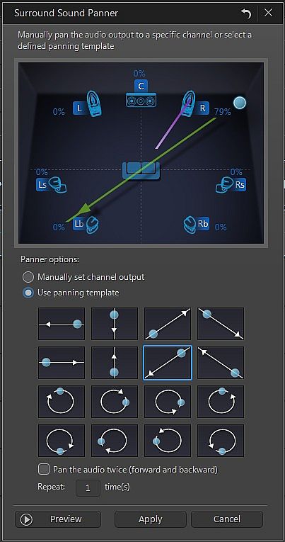 Create sophisticated surround sound projects using dynamic panning technology on any existing mono or multichannel audio file. The enhanced Surround Sound Panner provides precise control over speaker output, and lets you set timed repeats of established sound pans, for an ultra-realistic audio effect. You can now produce in FLAC and APE audio formats.