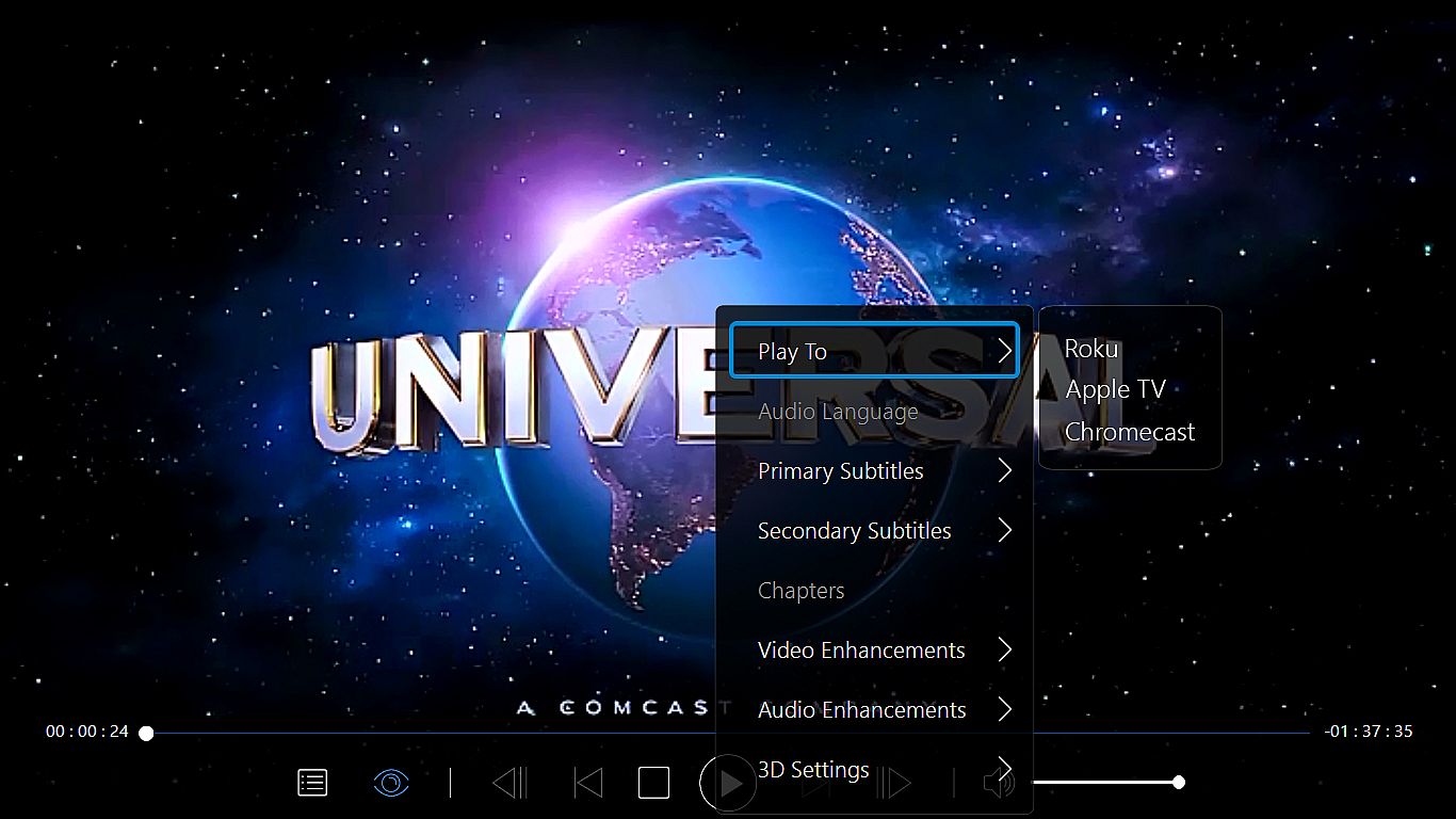 Immerse Yourself in VR with support for Oculus Rift and HTC Vive headsets, PowerDVD is the must-have player for the next-generation in multimedia entertainment. Explore new worlds in 360° video and photos. New 3D-360 video support makes the whole experience feel even more real!Media Casting to Big Screen