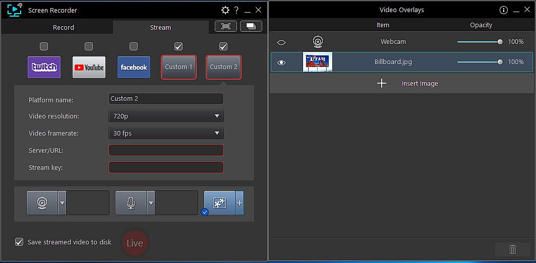 Start creating content that engages with your followers on Twitch, YouTube or Facebook.Integrate webcam commentary into livestreams with additional overlay objects.