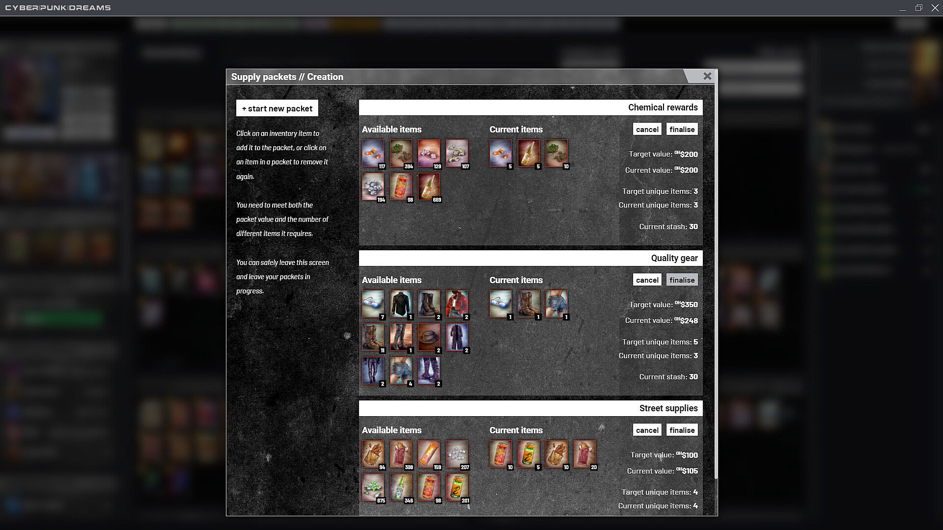 cyberpunkdreams is designed to be played in short bursts over the long term. You have a limited number of Action Points to use every real life day, and any number of ways you can use them. Draw from your decks and risk reward or injury. Stick to safer places to rest, recuperate and work on your skills, or work with your inventory to prepare for the next hustle. Events can unfold over days, weeks or even months. You can also store Action Points for later use, using breathers, hit the binge button for extended play sessions and discover new ways to hack and manipulate the system.