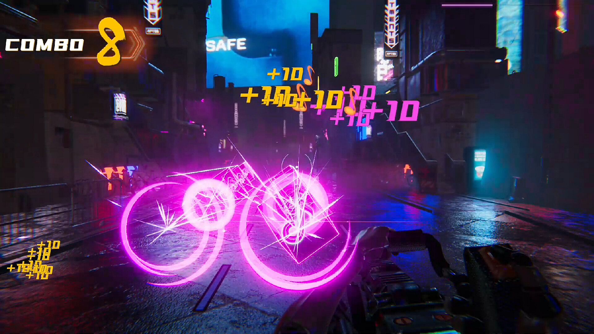 Holding a shotgun and a Gatling gun, quickly hunt monsters in a psychedelic cyberpunk city!