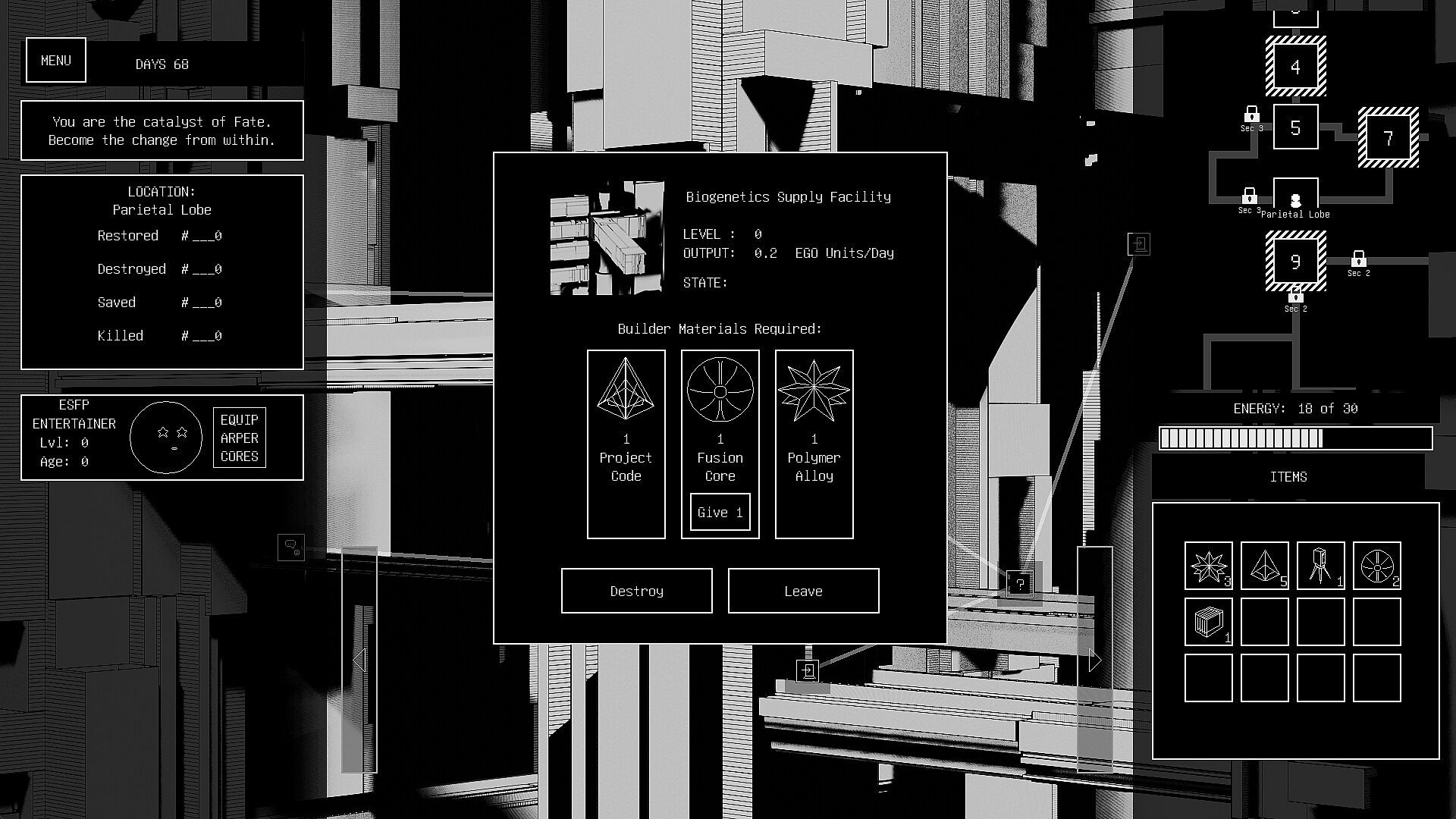 Absorb lost personality cores to upgrade yourself.