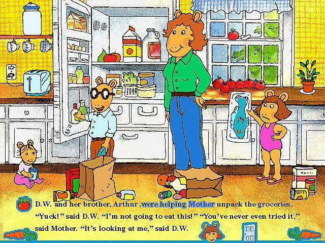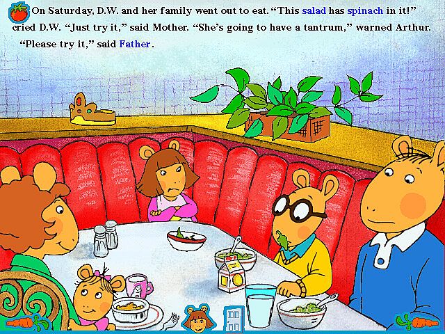 Since it's first release in 1998, Living Books' rendition of "D.W. The Picky Eater" has been enjoyed by countless children. Step-by-step, the reader will find the story is full of surprising encounters with many of their favorite Arthur storybook characters, providing new ways to interact with the book again and again.