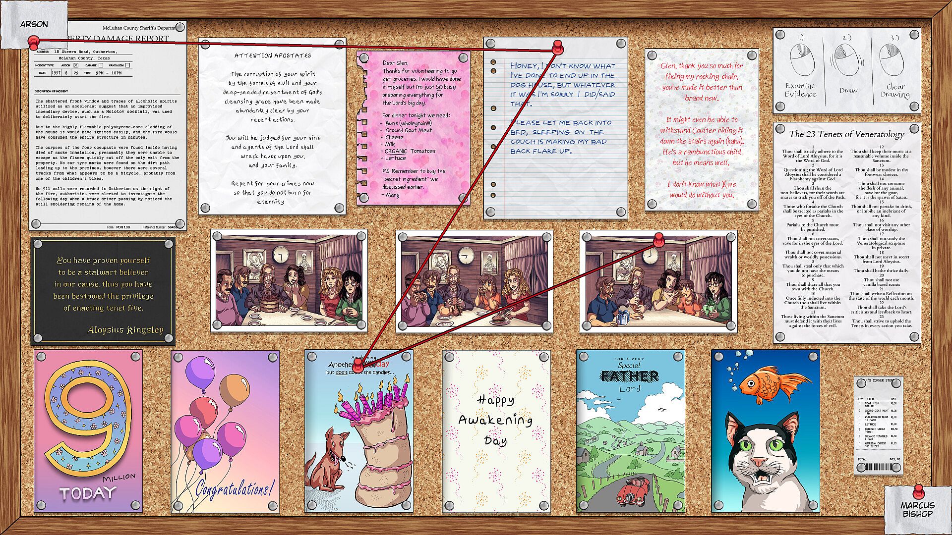 Meticulously sort the clues on your pinboard however you see fit. Do you prefer the neat orderly rows of a professional detective, or the scattered piles of a conspiracy theorist?