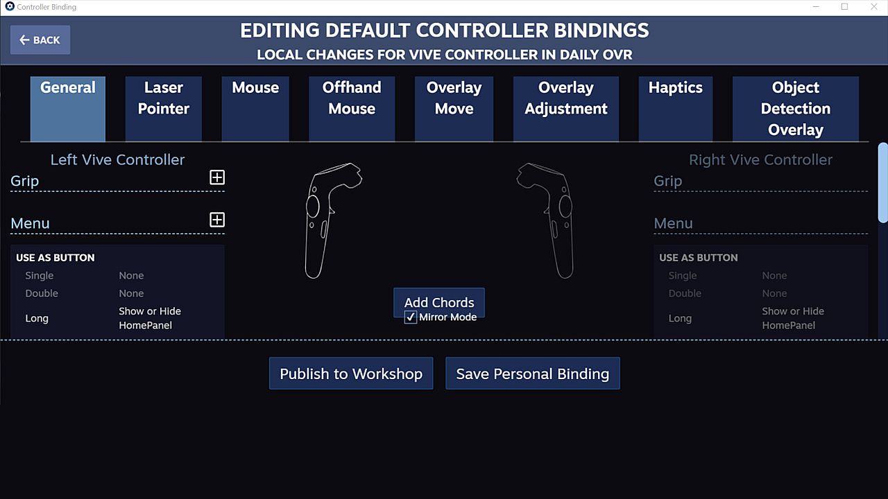 Daily OVR supports SteamVR 2.0 Input. You can customize button settings yourself.