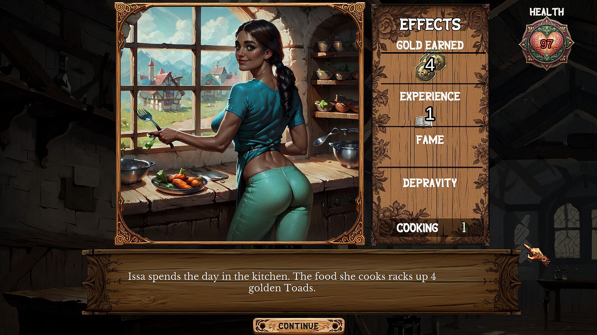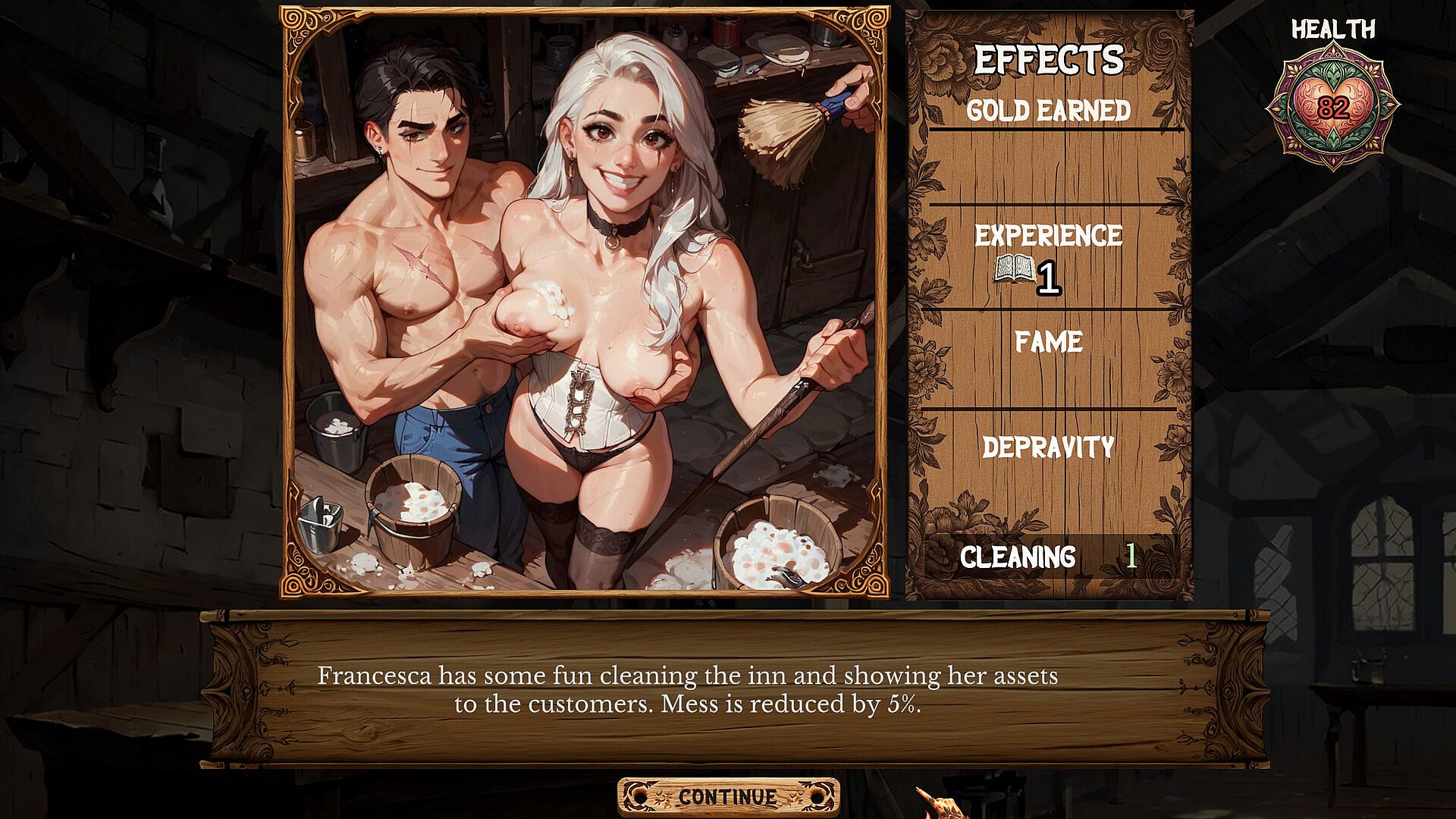 As your inn grows in popularity, you’ll begin to attract all manner of guests, looking for more than just a place to lay their heads. If your girls meet their requirements, you can send them to entertain your patrons, pleasuring them all night long. The better they perform, the more fame your establishment will accrue, unlocking more interactions, and growing your wealth.
