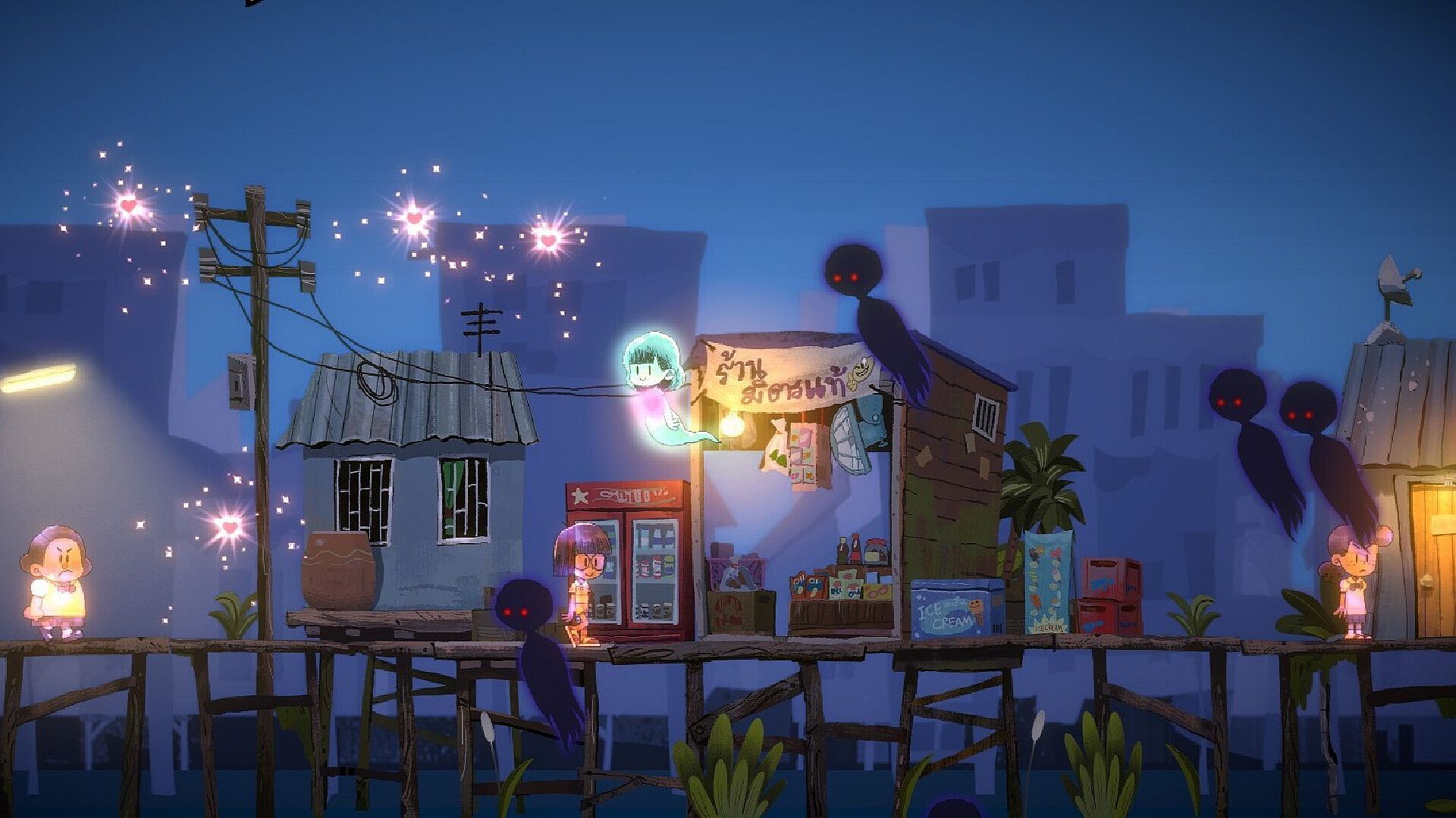 Dancing with Ghosts is a wholesome, interactive-narrative with a compelling, heartfelt story full of charm and humor. The interactive narrative is set within the chill, sim-type gameplay of a living village. Players play the role of Mai, a 15 year old Thai girl who feels lost and overcome with guilt because of the death of her parents. Mai meets an 11 year old ghost, who has lost her memory and who is trapped in this world.