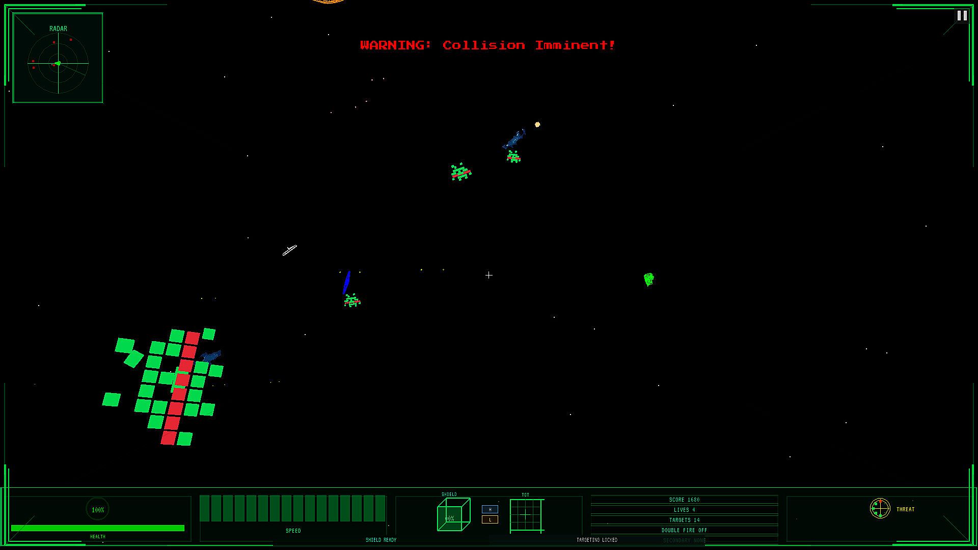 Retro vector aesthetic inspired by early arcade wireframe games, rendered in glowing phosphor green