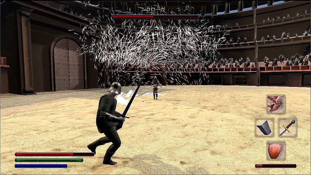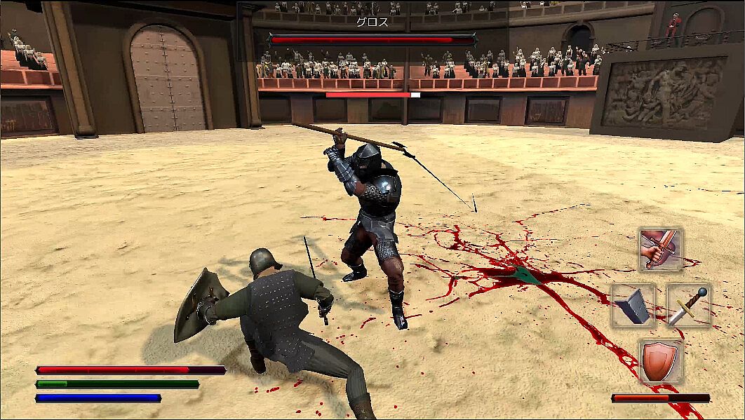 .In addition to improving a character's basic abilities through training, player gladiators can acquire various weapon proficiencies, various types of attack skills, etc., allowing them to develop a variety of unique strengths.