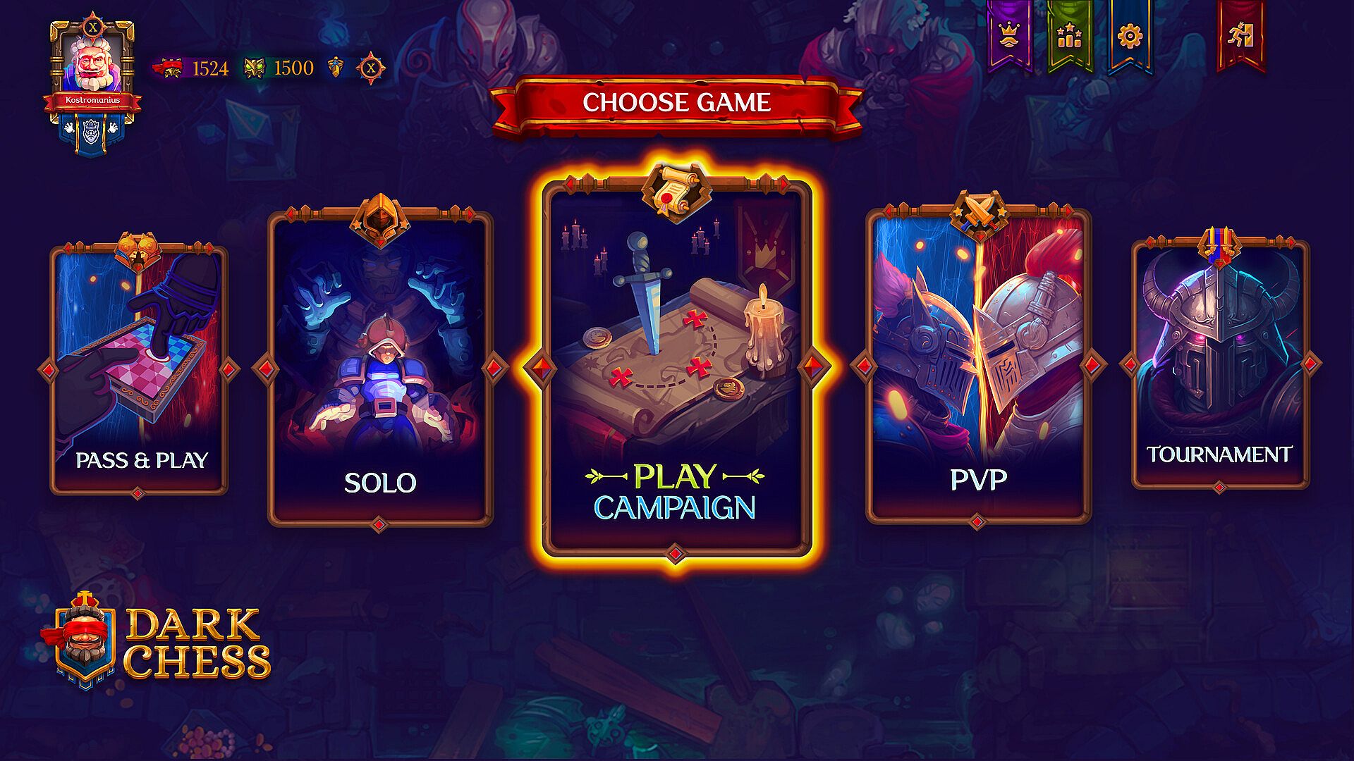 Take a step to walk deeper into the Dark Chess single player story campaign to fight Queens and Kings of the past.