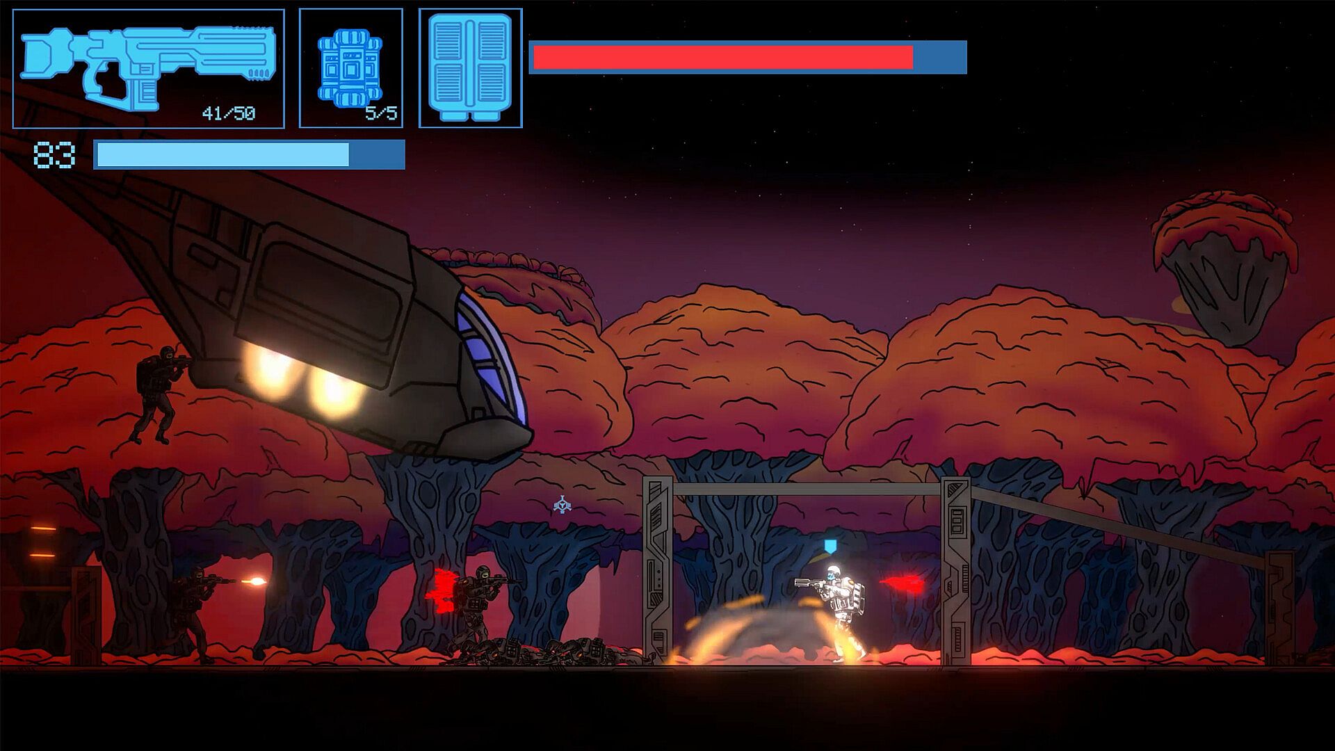 Dark Eyes: Super Soldier is a fast-paced 2D sci-fi shooter set on the front lines of humanity’s war against the Delma—an alien species known as the “Dark Eyes” for their ominous, black dark eyes. As Earth’s Space Defense Force (ESDF) launches a desperate counter-offensive, you fight 'boots on the ground' alongside marines, push through massive battles, and uncover the truth behind the 'real' enemy threat.