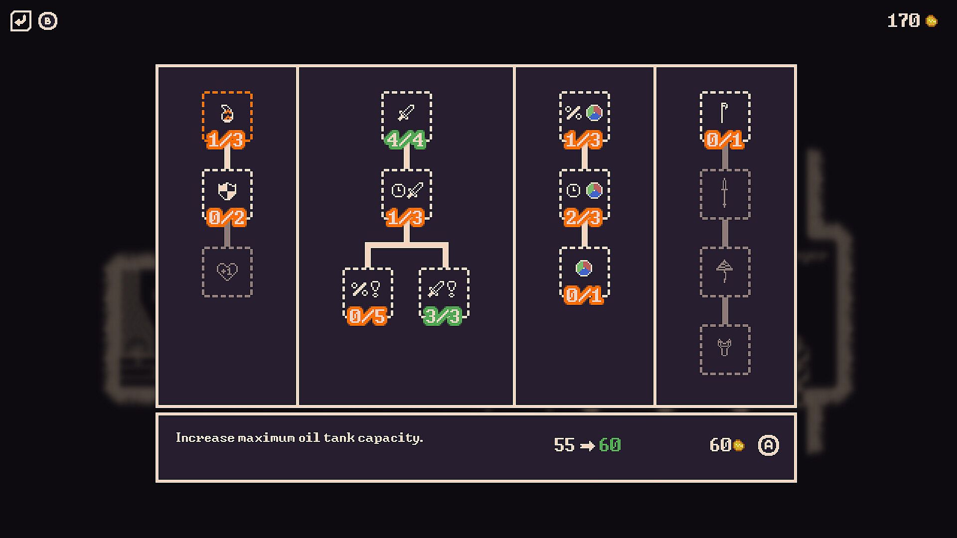 With the gold nuggets you will collect through your runs, you can purchase permanent upgrades at the blacksmith