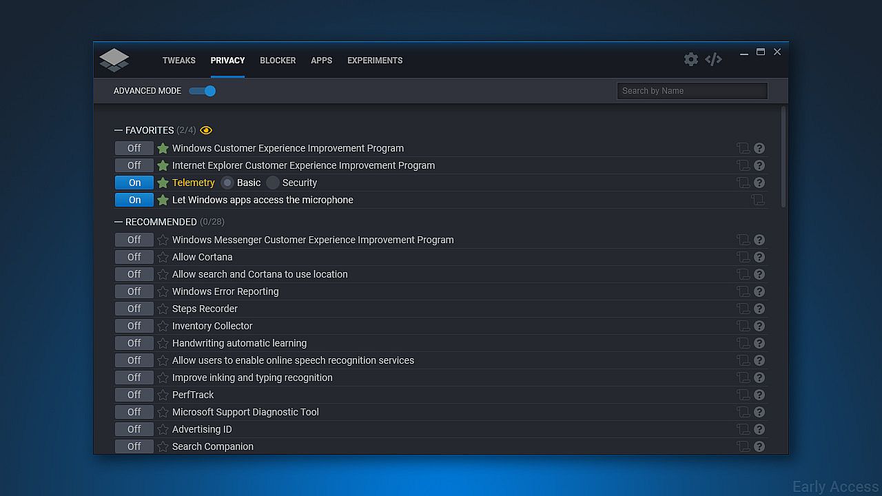 Keeps track of changes to privacy settings. For example, if you disabled something in the DashboardX, and then this setting was enabled again (outside the program), the next time you start the program Observer will highlight this setting in orange. That’s pretty cool, right? - Tweaker (Shipped)