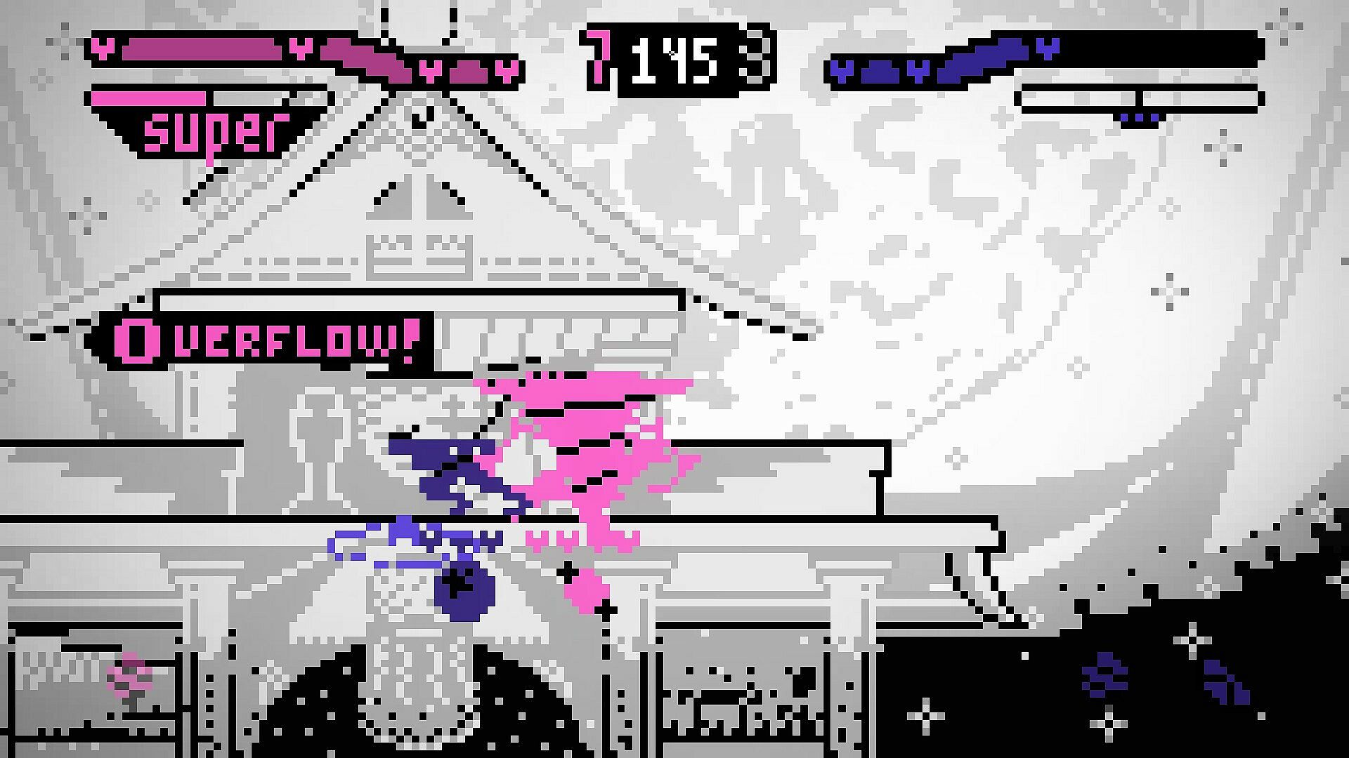 The expressive combo system is aided by the crumple and crumple break mechanics which give you access to relentless combos when landing a strong combo starter. Overflow gives a massive frame advantage and pairs fantastically with crumple mechanics. Players darken when in hitstun to help combos feel intuitive, alongside a combo counter that gives players precise immediate feedback on their combos and strings.