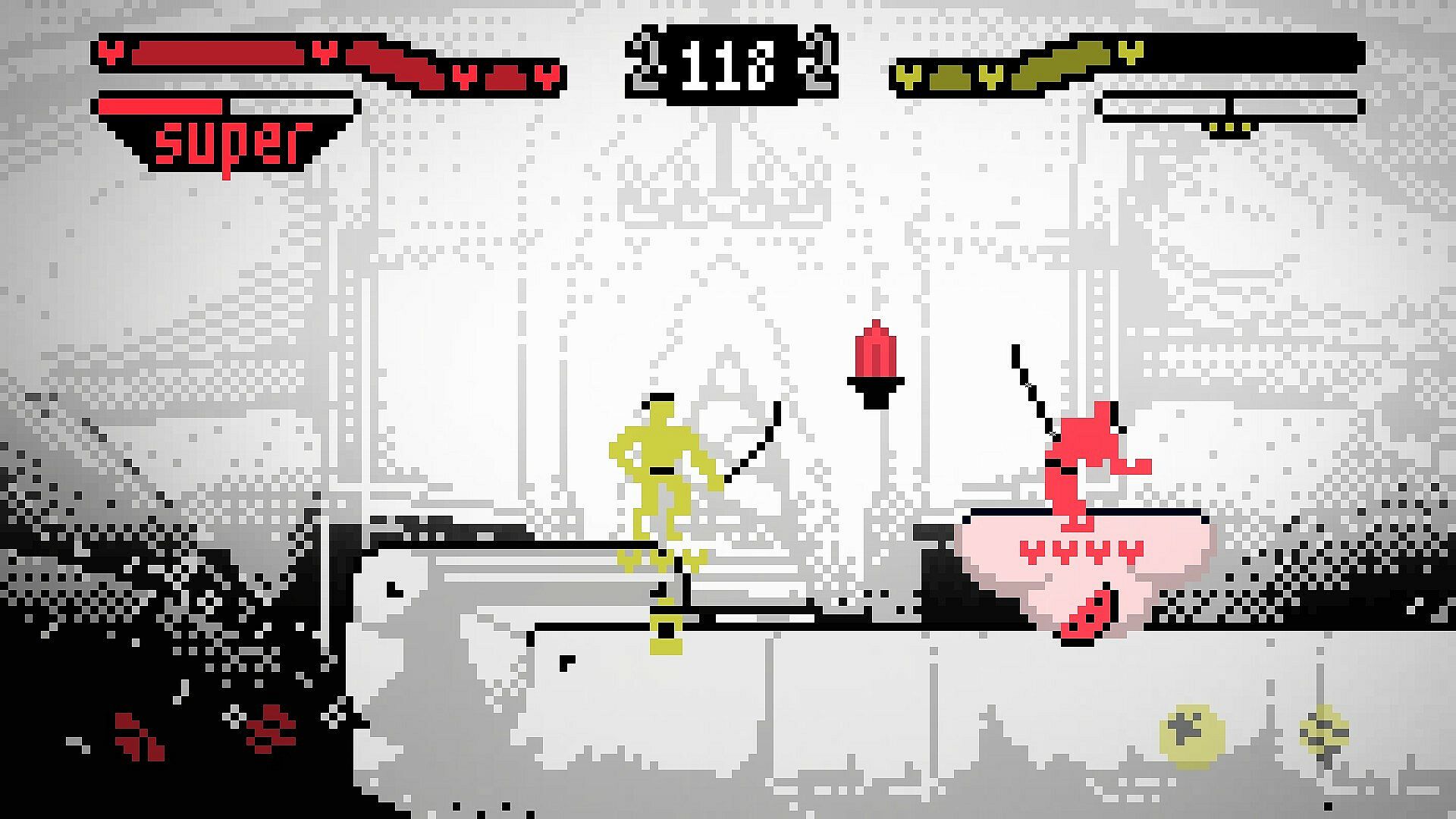 Dance your swords across the arena while you try to keep your feet on the ground in this fast-paced platform fighter! Choose from eight different supers and reversals to dismantle the sword-fighting competition with 64 possible move combinations.