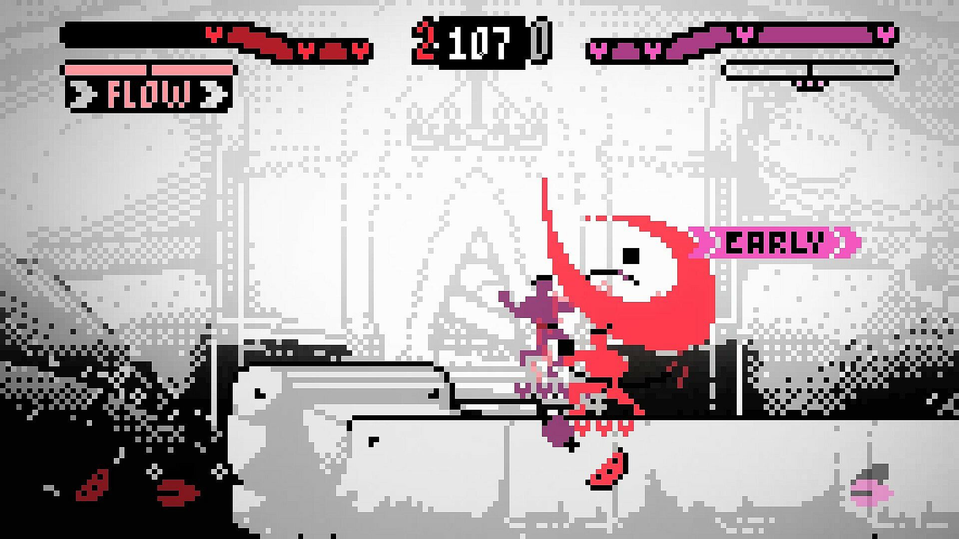 Guarding and parrying are designed for fast-paced play but don't leave defensive players behind. Parries being cancellable into dashes and special back-dashes keep footsies at the heart of the game and it's neutral. Parry is intended to complement the movement system and can even be done in the air, although this is not as versatile. Blocking is done by crouching and works to reduce your hitstun, accelerate your escape, and open up your options.