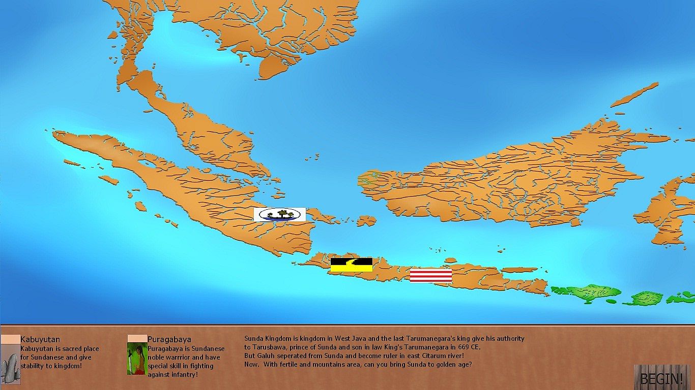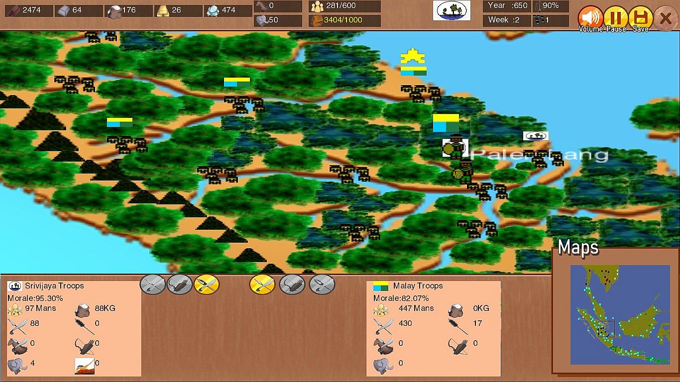 Dato of Srivijaya is historical real time strategy set in 7th century at Southeast Asia after Funan empire in Indocina has fall and regional power has shift to Srivijaya, unknown kingdom which rise from upstream South Sumatra's river to emerging great maritime power in Asia for several centuries. In 2025 version, all kingdoms in Southeast Asia now playable and the map has expanded to North Vietnam and South Myanmar.