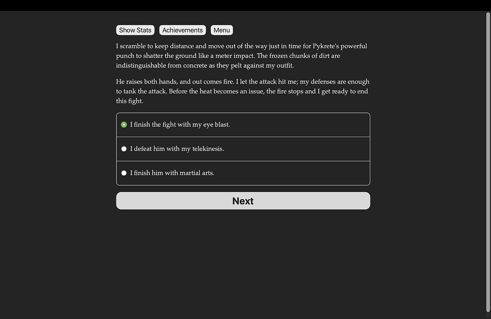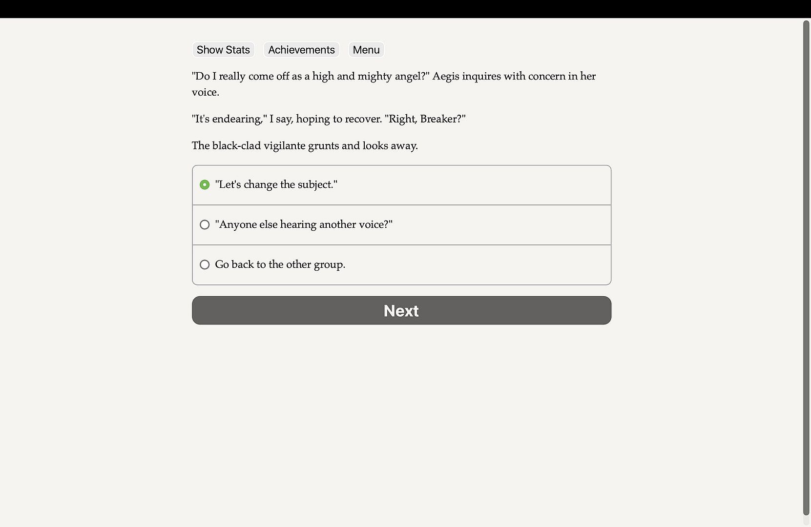 Dawn of Heroes is a 450k-word interactive novel by C. Claymore. It's entirely text-based, without graphics or sound effects, and fueled by the vast, unstoppable power of your imagination.