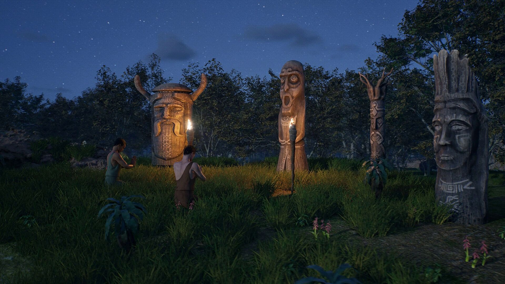 Survival extends beyond food and shelter. Religious and belief-based systems grant different bonuses and influence how your society develops over time. Early cultural and governance mechanics introduce meaningful choices that affect morale, stability, and settlement identity.