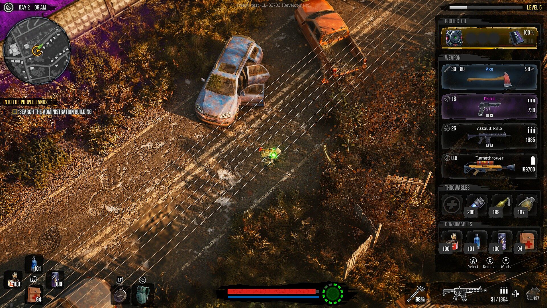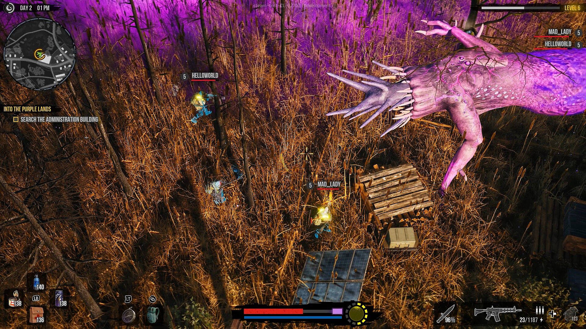 DDoD is a top-down roguelite shooter with survival elements, built around a massive map. Play solo or team up with a few other players for co-op runs.