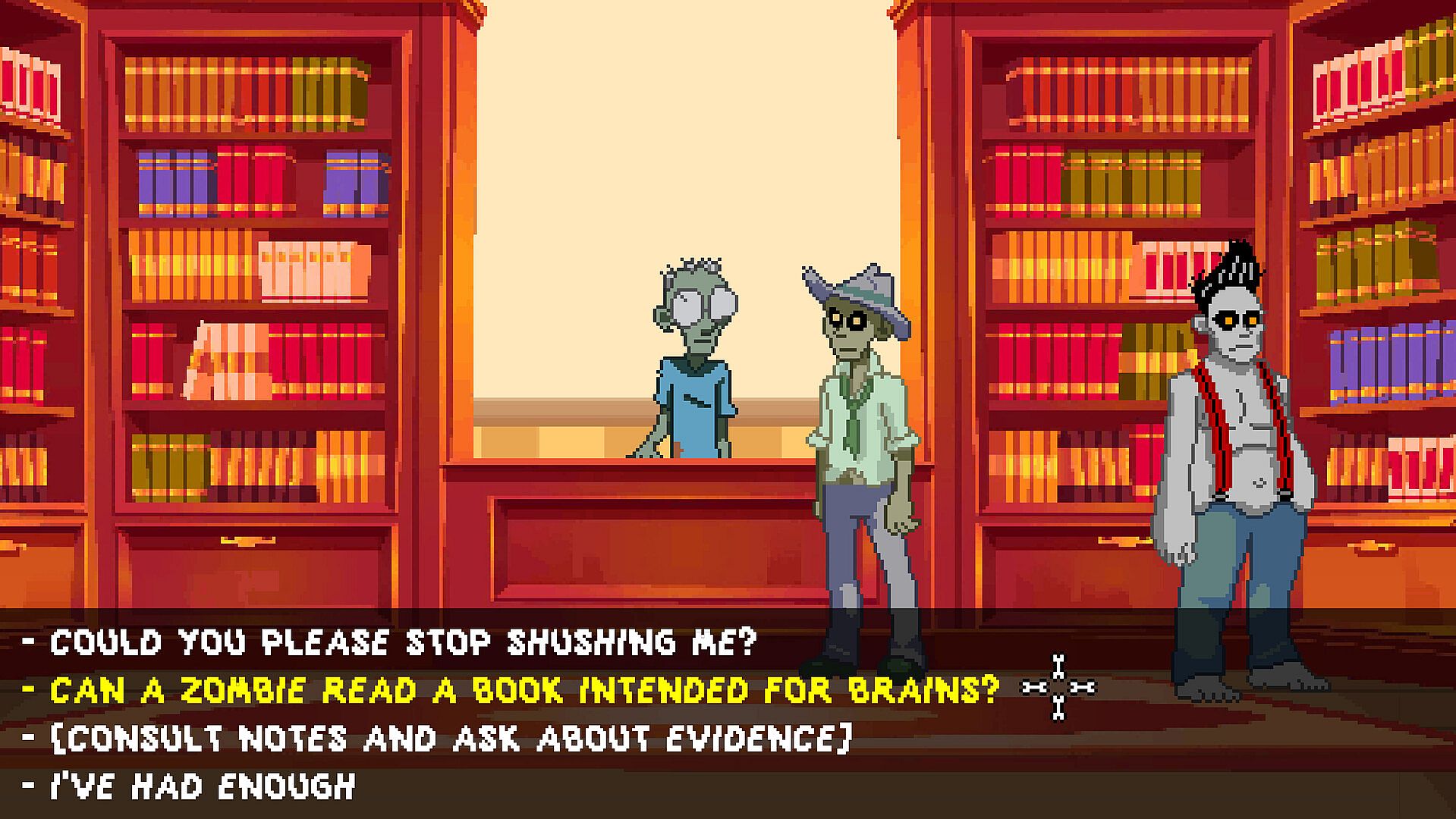 Visit crime scenes, interrogate decomposing suspects and quirky witnesses, solve puzzles, gather clues and use your brain (or what's left of it) to interpret them and arrive at each case's conclusion - hopefully the right one.