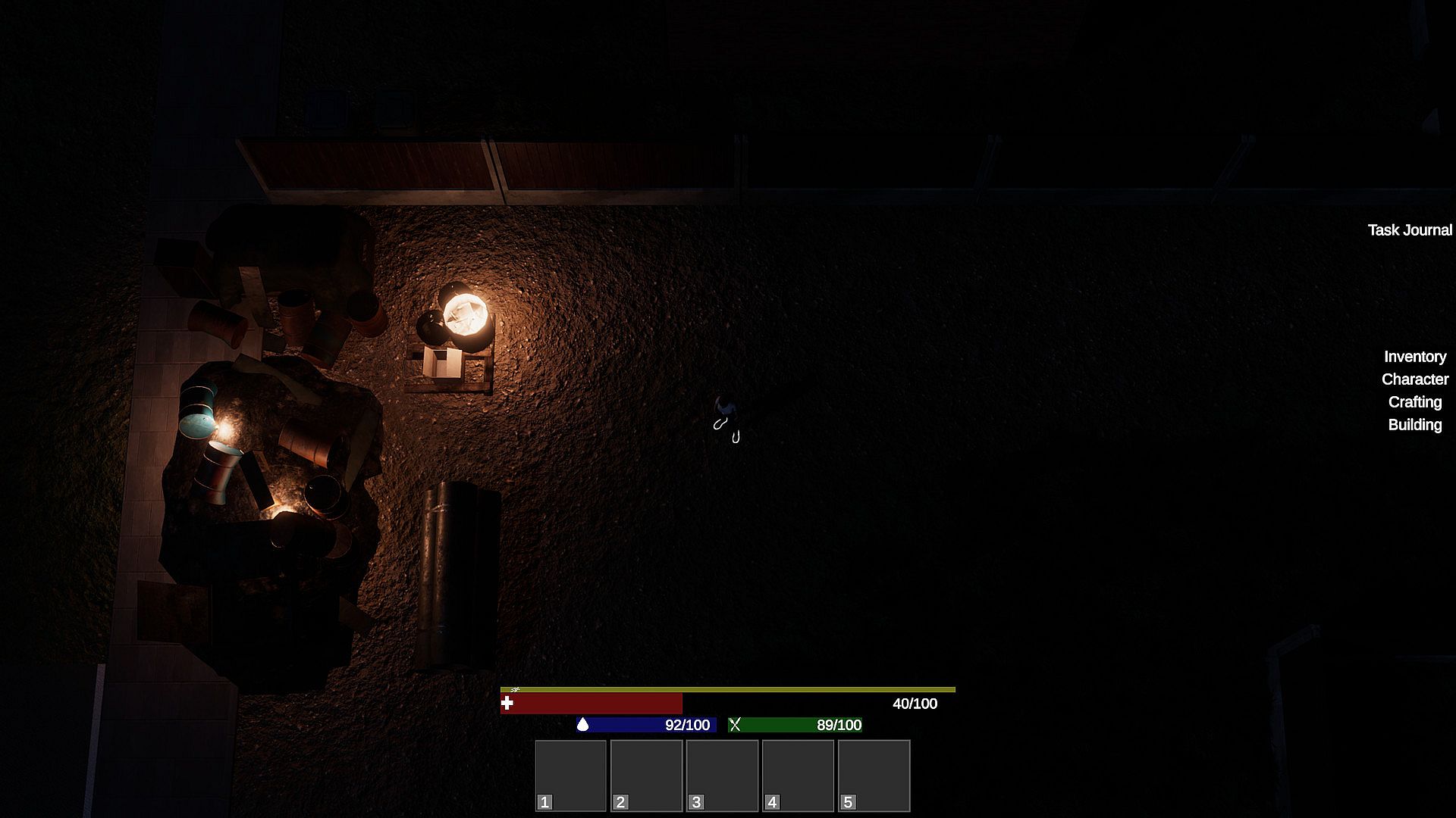 Building system, create a base anywhere on in the world from, walls, floors and turrets as well as stash boxes to store loot.