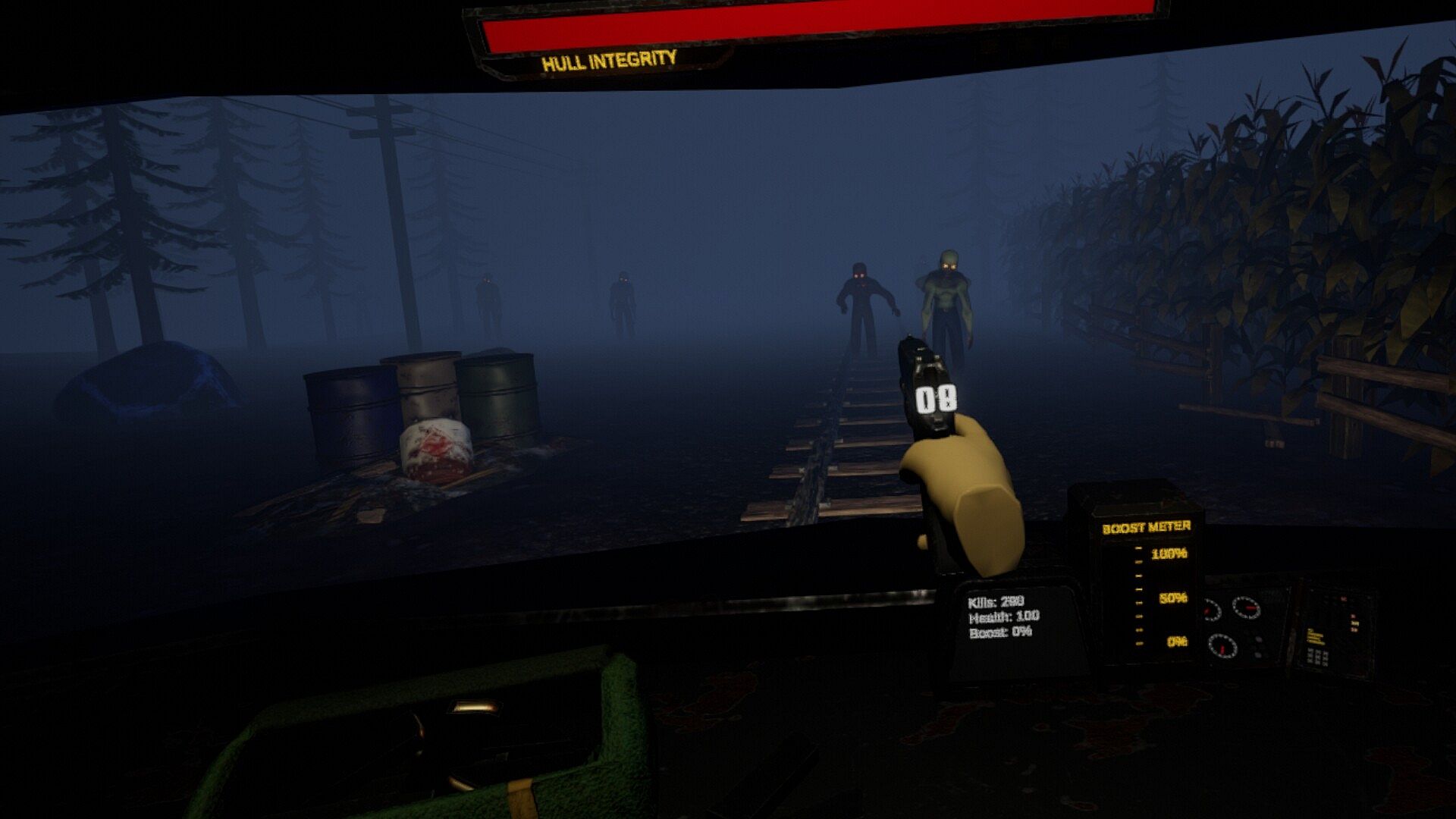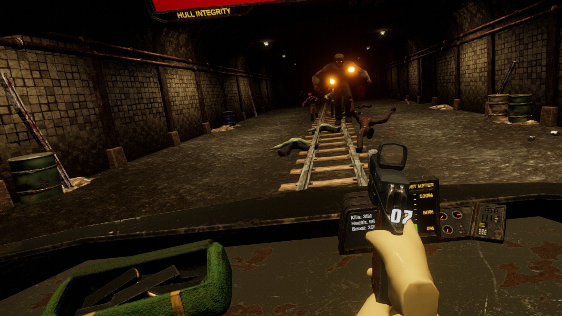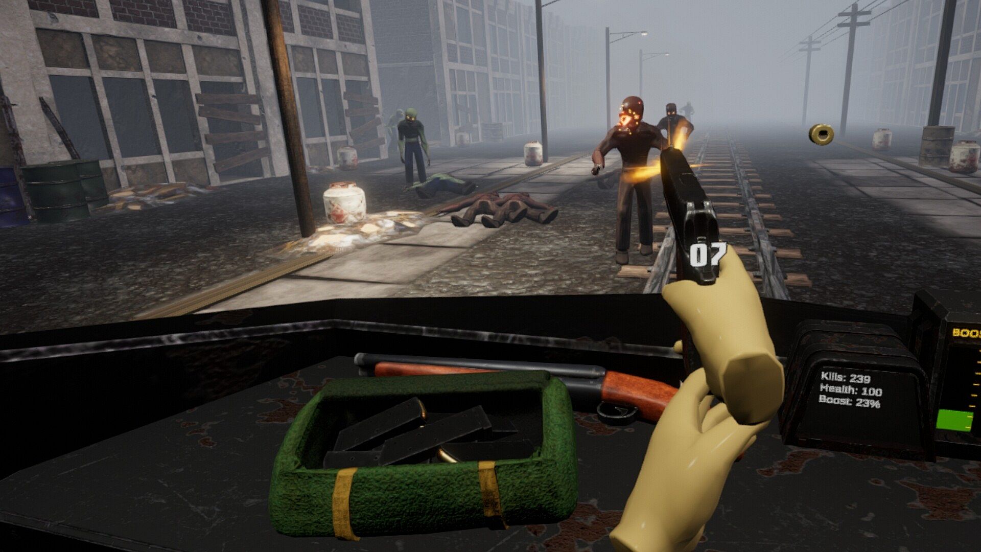 Dead In Your TrackZ is a VR Zombie Shooter created by 3 brothers! Defend your train from hordes of zombies until your train has refueled. It features multiple zombie types, weapon and train upgrades, and different levels and environments.
