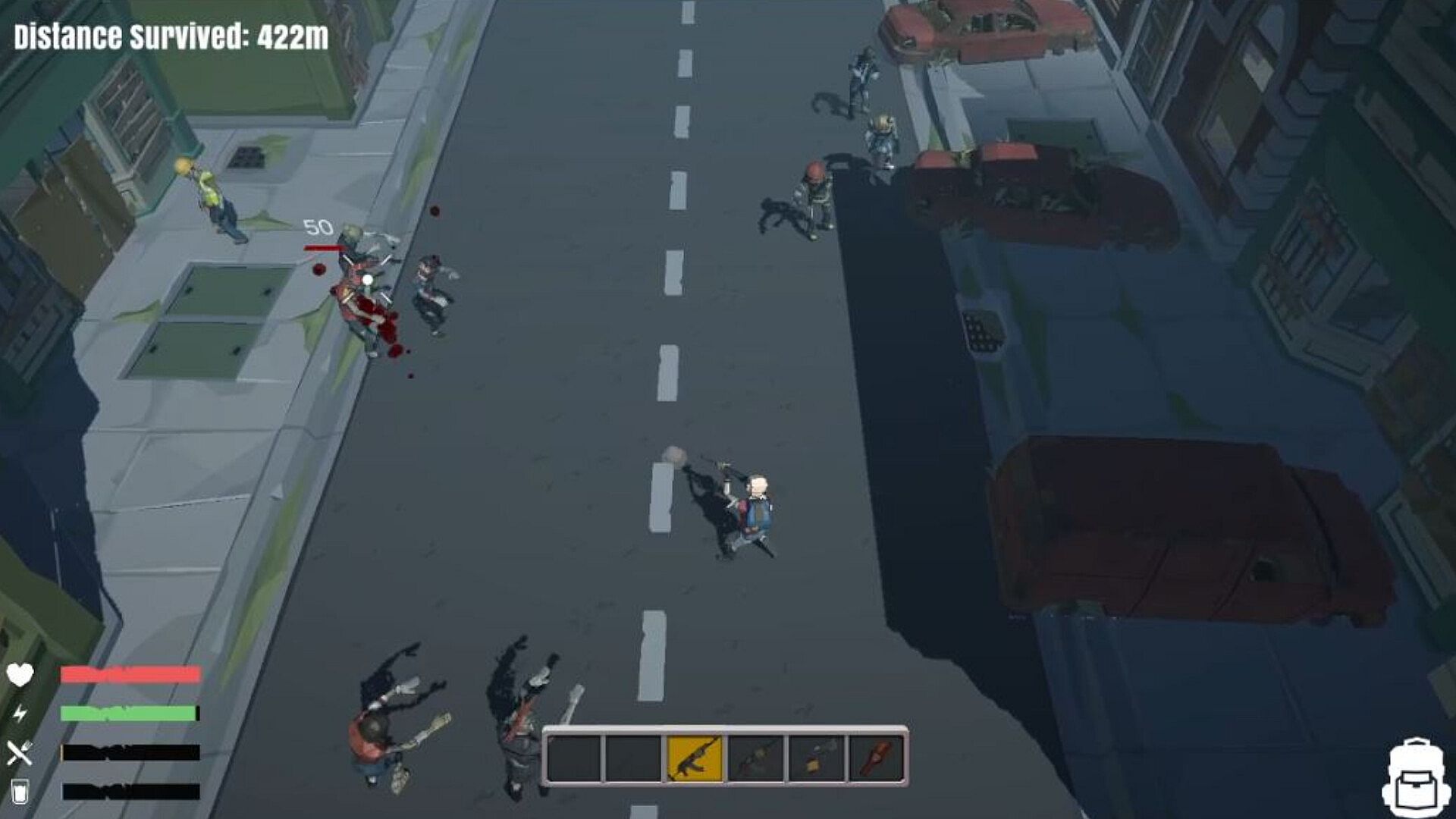 The Zombies arent your only challenge. Guns may cost bullets but melee attacks will cost stamina! You'll have to manage drinking water and eating food to keep your stamina regeneration up.