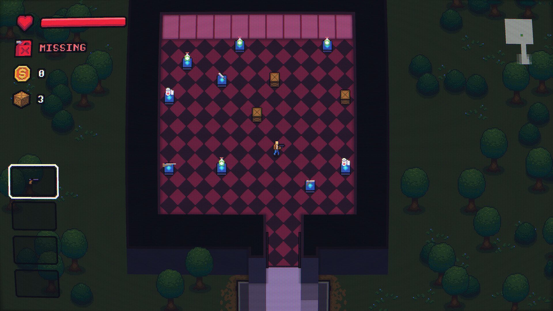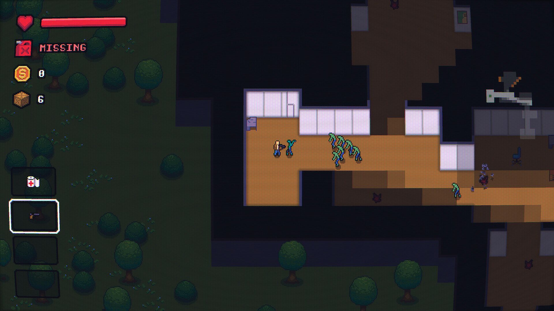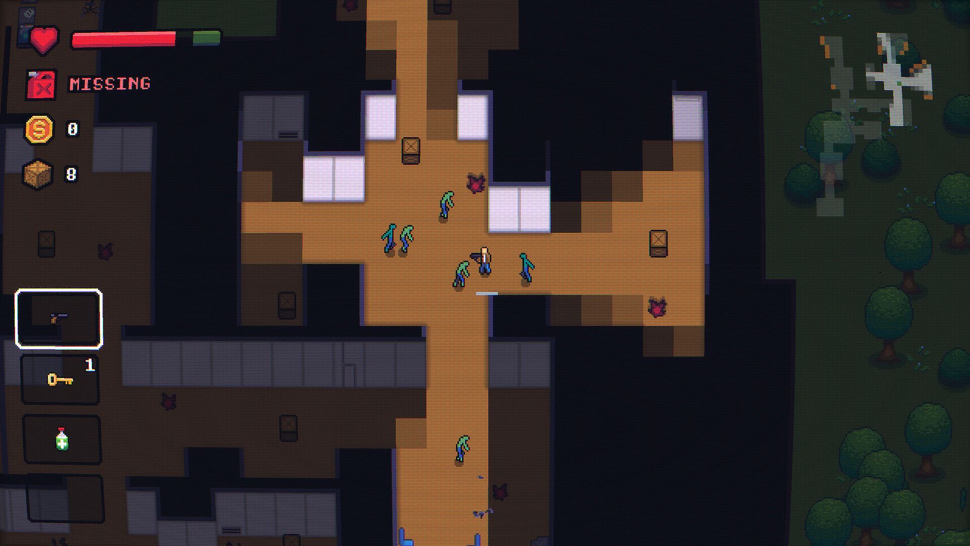 Your only hope of reaching the base is to stop every 50 km at the nearest building to scavenge for fuel. Each stop forces you to face waves of zombies while searching for crates. The crates contain random loot: weapons, consumables, tools, and sometimes the precious fuel you need to keep going.
