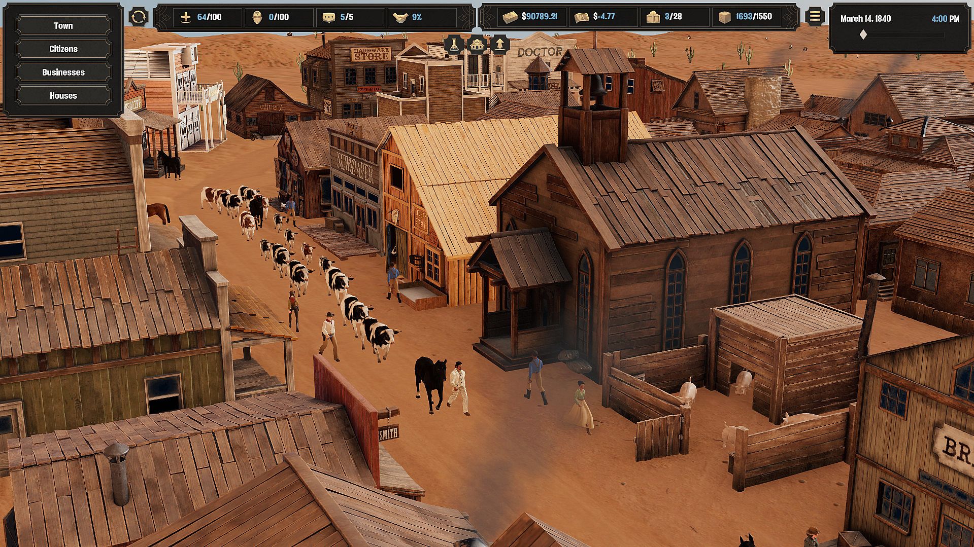 Start with a strip of land and watch as a western town builds up around you, bringing in a myriad of citizens and businesses.