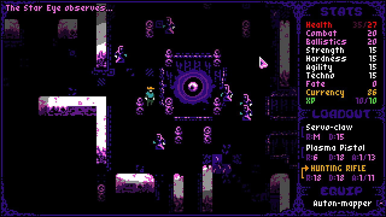 Every playthrough a procedurally-generated nightmare: Each sector fight through a unique layout as you level-up differently with strange skills, find rusting weapons, gadgets and gear, and deal with a variety of room types and enemies and sporadic events that happen in and between the levels.