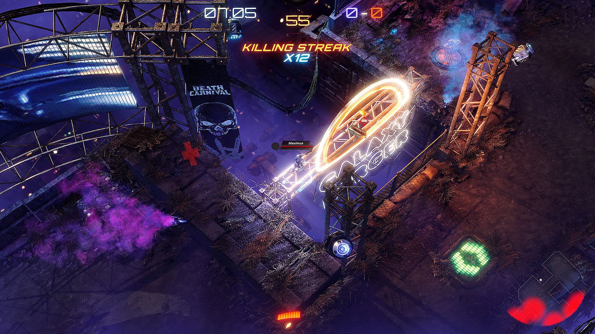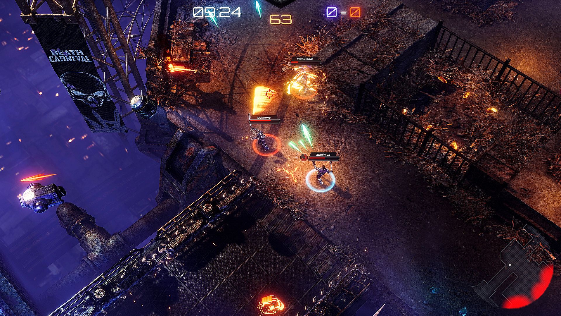 Welcome to Death Carnival, the Intense Top-Down Shooter with multi-elevation combat. Easy to start, thrilling to watch. Insane assortment of weapons & characters, and a controller-smashing experience that will leave you hungry for more. Play story campaign solo, co-op with friends, or destroy everyone in PvP. Cross-platform and packed with spectator and party modes so the fun never ends. Choose from over a dozen characters each with unique attacks and story campaigns.