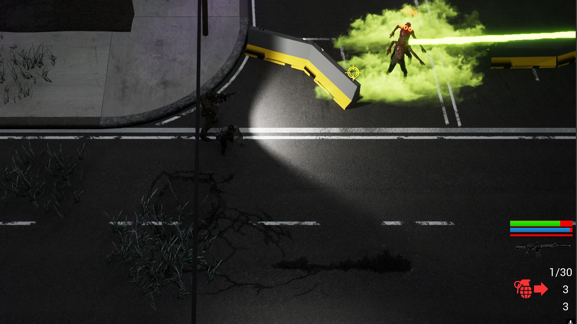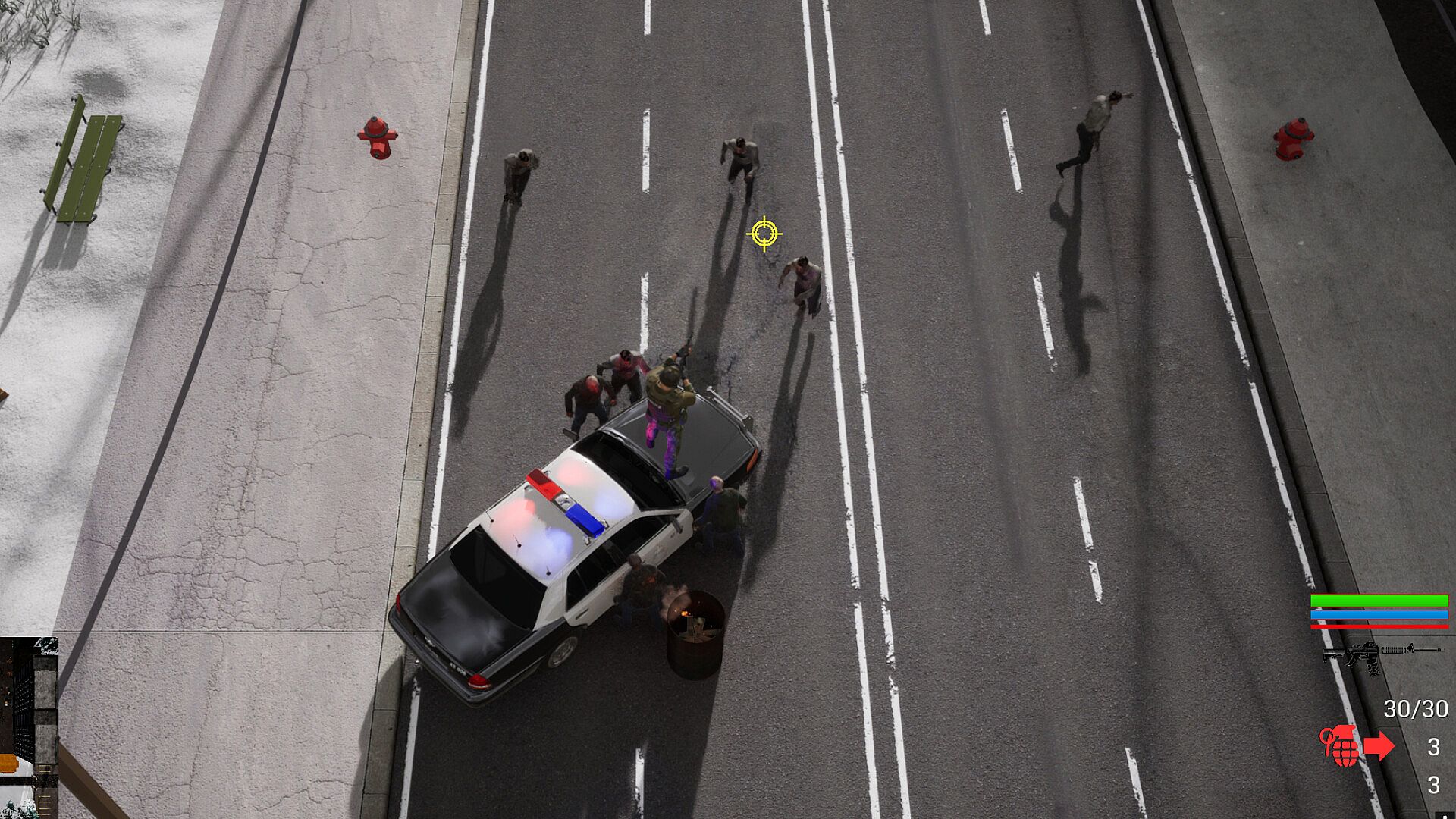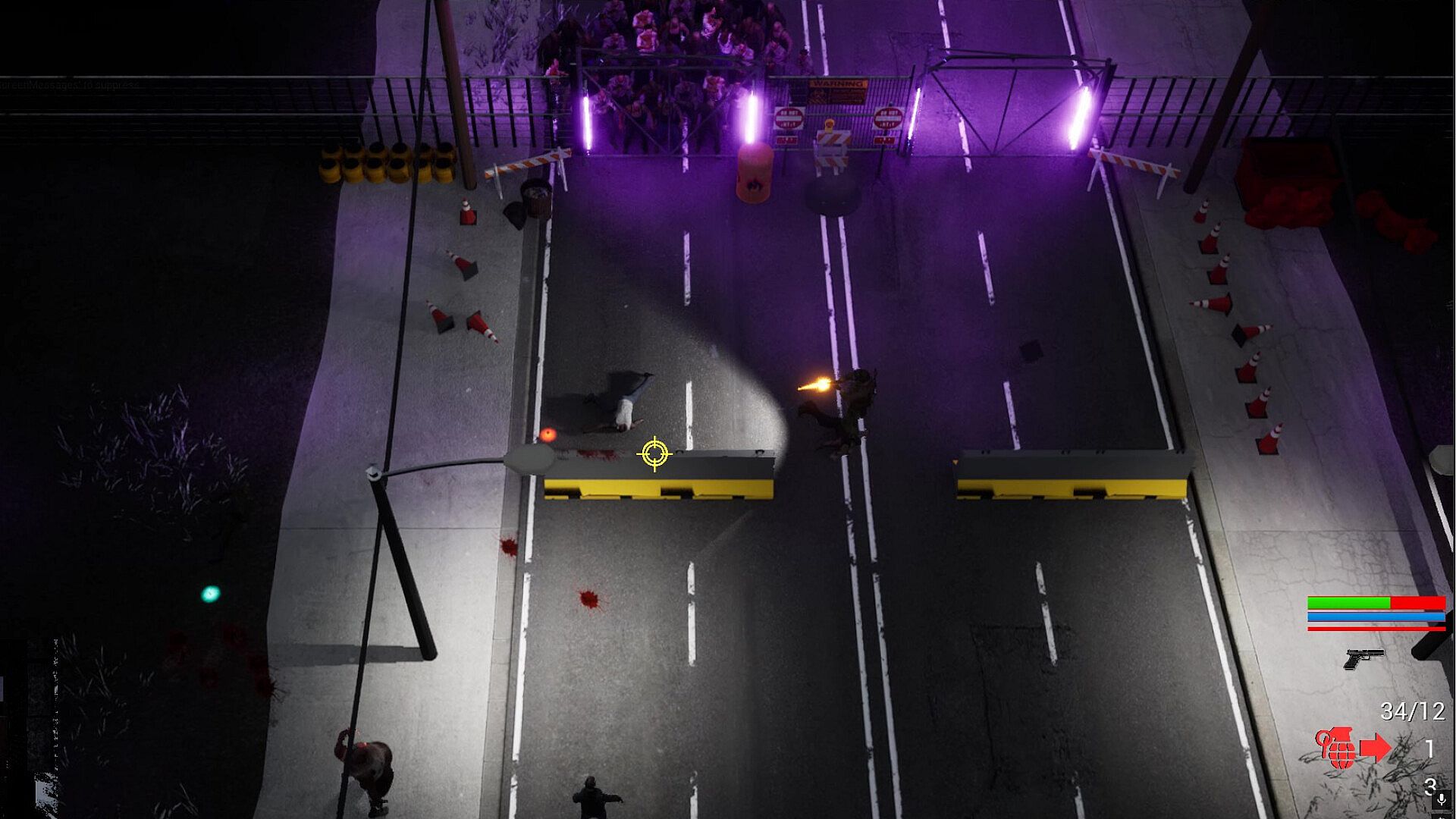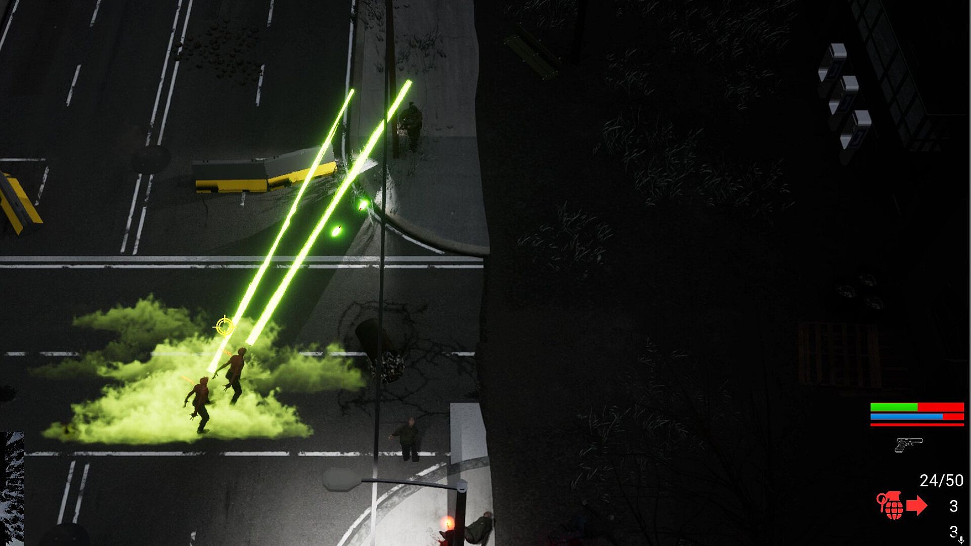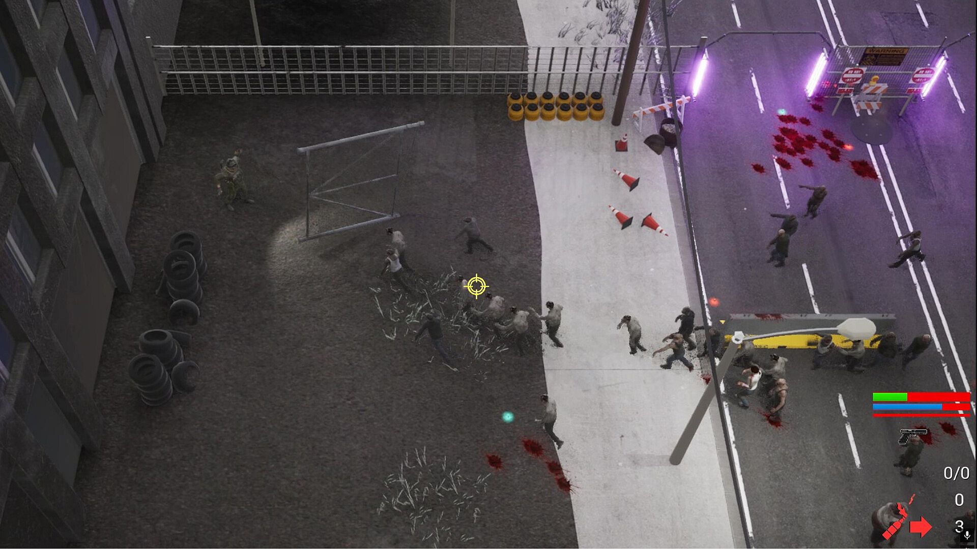 Death Hive is a top-down zombie survival shooter combining fast-paced combat, resource management, and exploration. Gather ammo and health packs, use fires to keep warm in the frigid environment, and push deeper into the infested streets.
