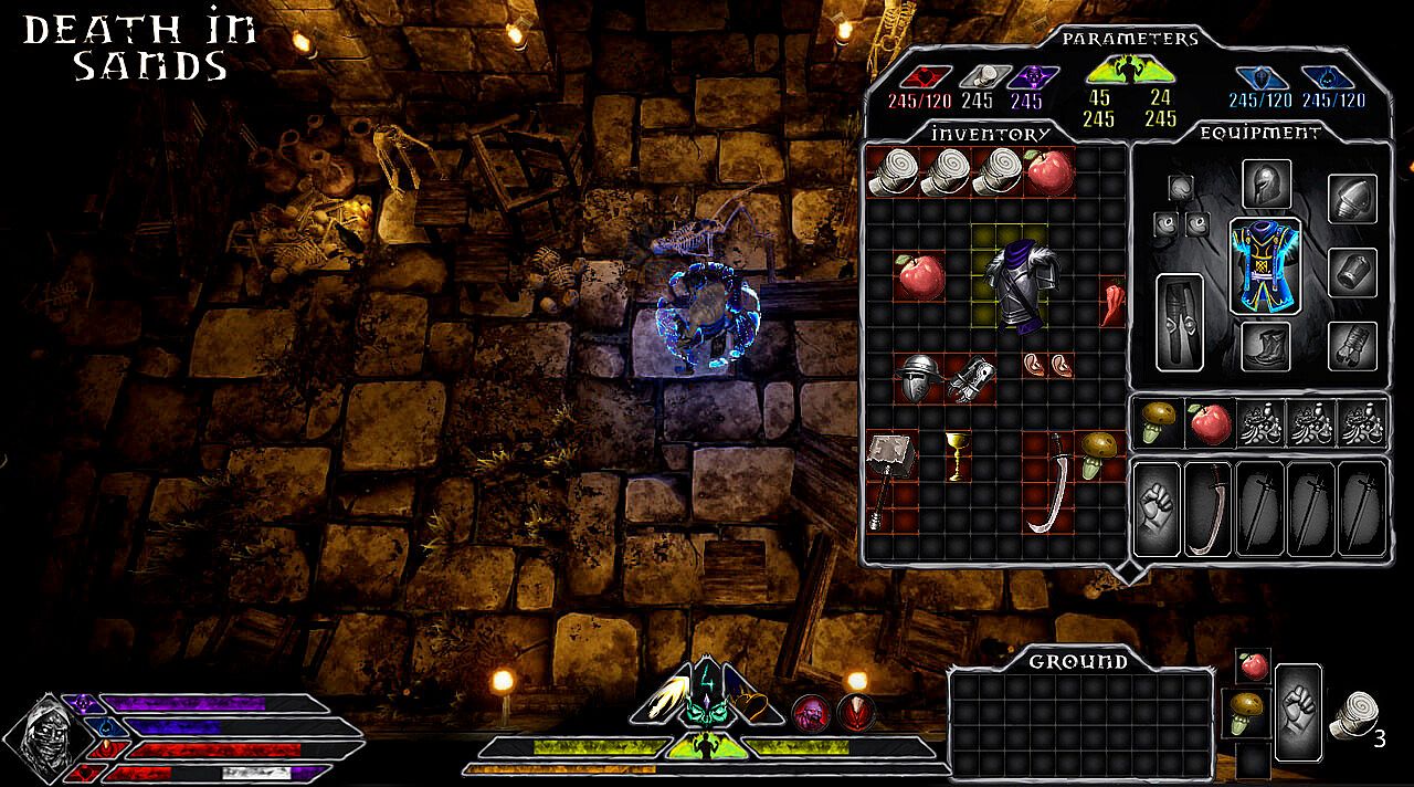 Death in Sands is an action RPG with a top-down view in which you need to fight enemies, search for better weapons and gear, as well as food, various medicinal and psychotropic plants that will allow you to fight more effectively or at least simply survive in harsh conditions of dungeons and ruins filled with bloodthirsty creatures and cultists who desire only your death, and maybe even something worse...