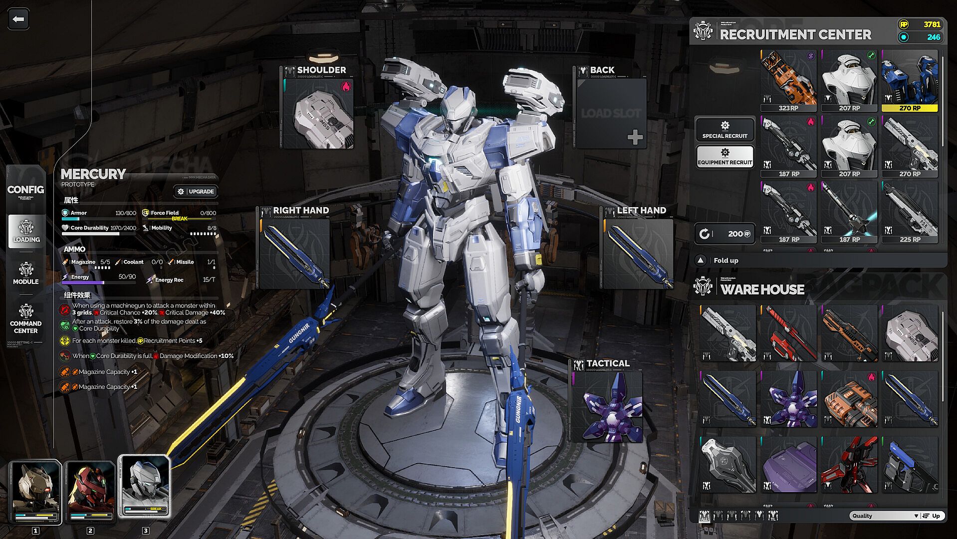 Choose from tons of loadouts and fully arm your mecha squad. Each loadout offers a unique combat style and method of attack. Certain combinations even unlock Synergy Skills.
