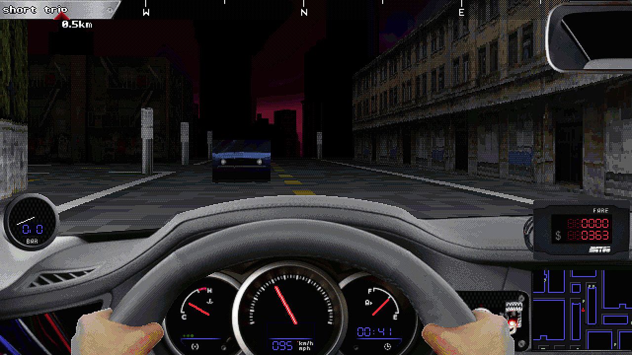 Death Taxi 3000 uses a custom raycaster graphics engine, a technology seldom used by racing games of the past, and at its core is completely compatible with vintage MS-DOS hardware.