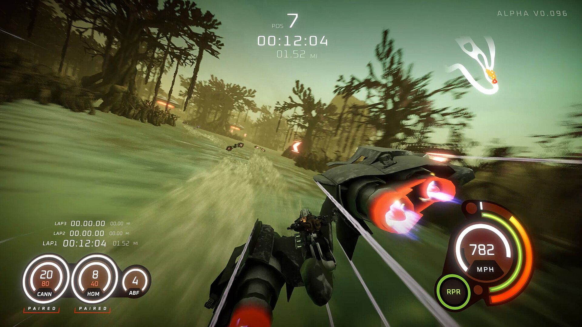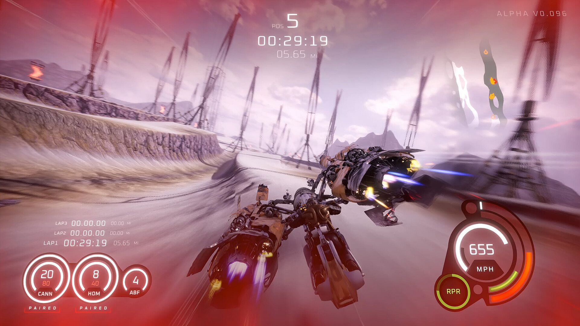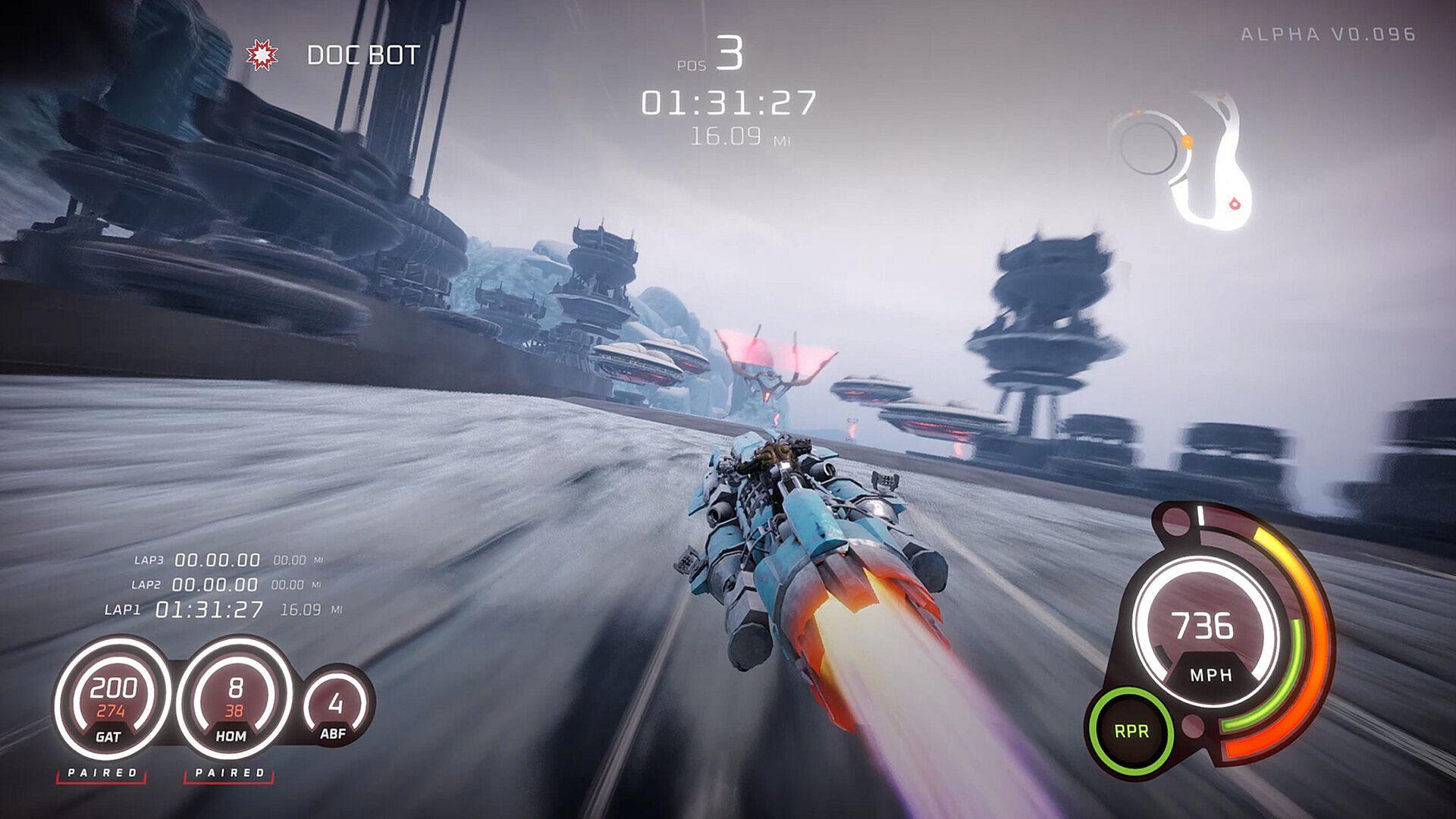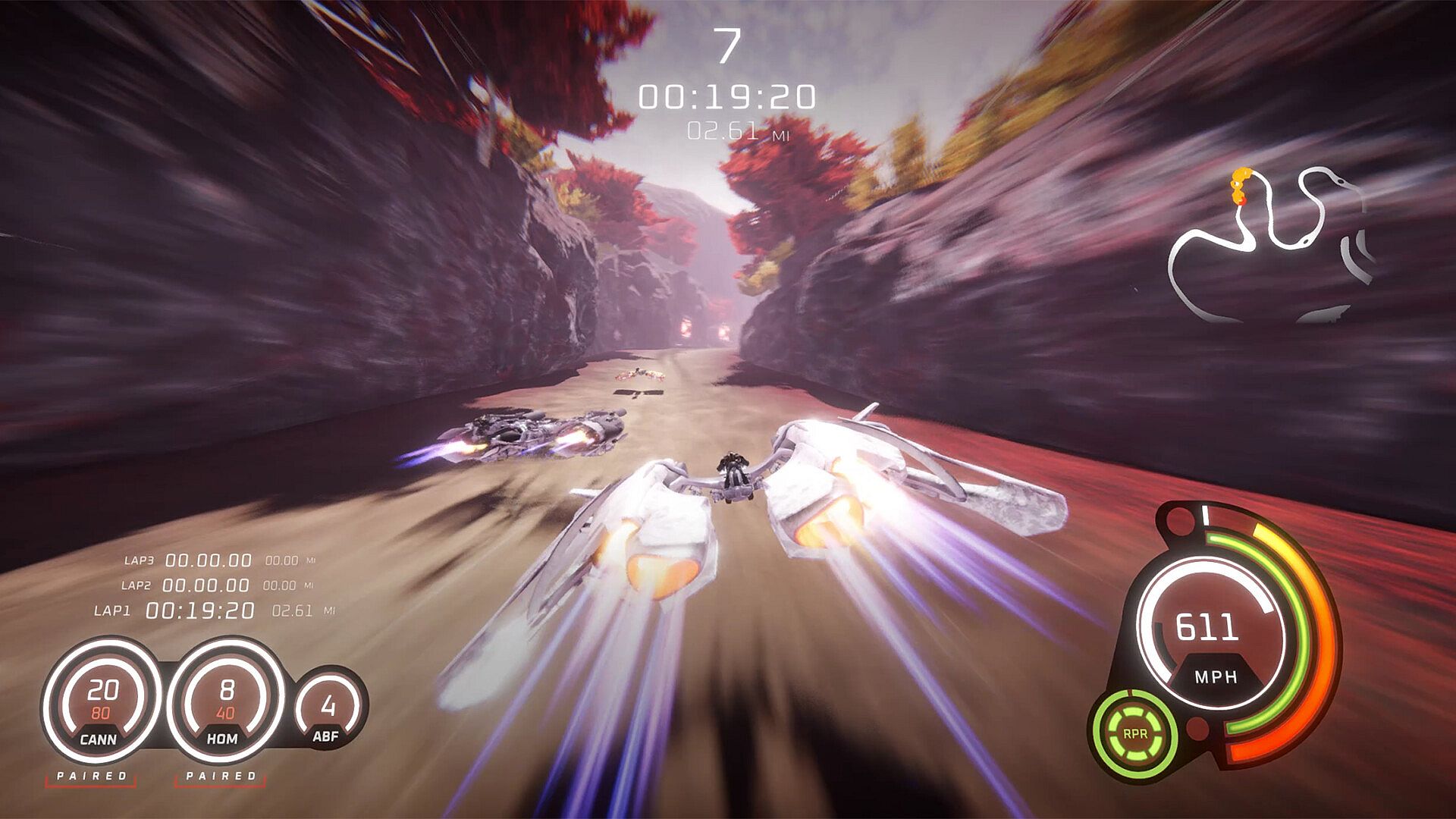 DEATHGRIP introduces a depth to its racing controls that challenges the player to explore the skill ceiling. From afterburner allowed at any time to pitching, rolling, drifting, repairing, managing heat, and firing weapons, one should take pride in their ability to master a racer.