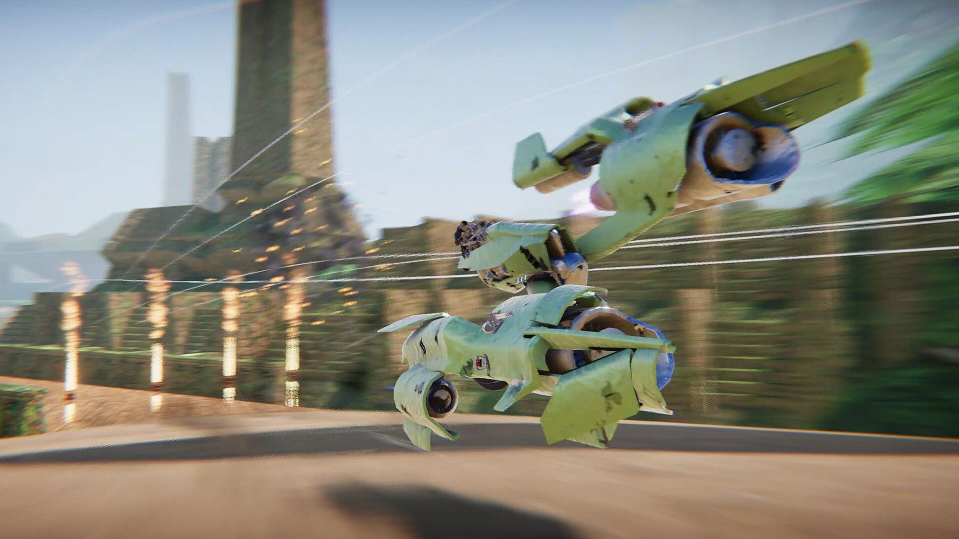 Race against AI with offensive and defensive armaments. Outfit your racer with cannons, shotguns, missiles, countermeasures, and more. Witness the carnage as the track turns into a battlefield.