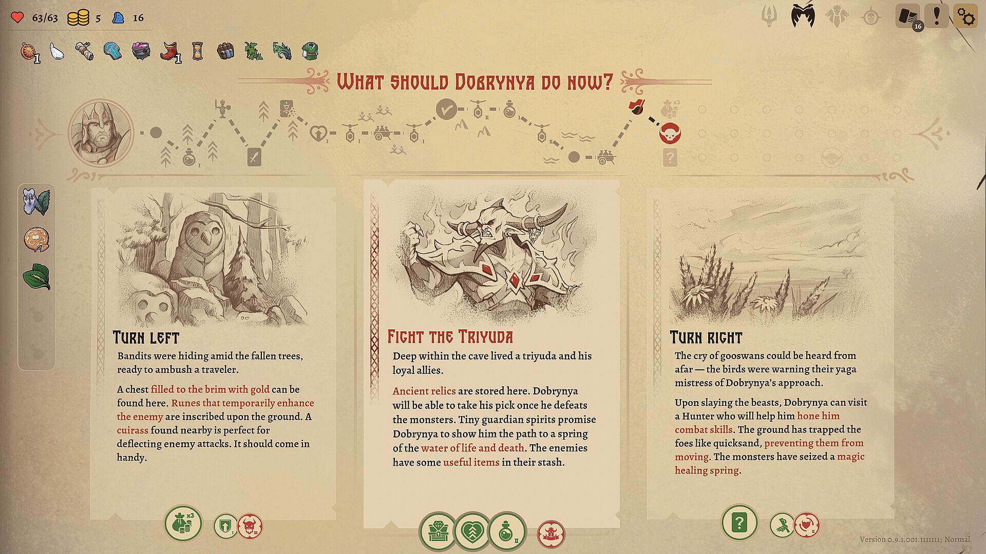 After each battle, you’ll decide where to go next. A swamp with a weak enemy or a clearing with a serious foe? The harder the path, the more valuable the reward.